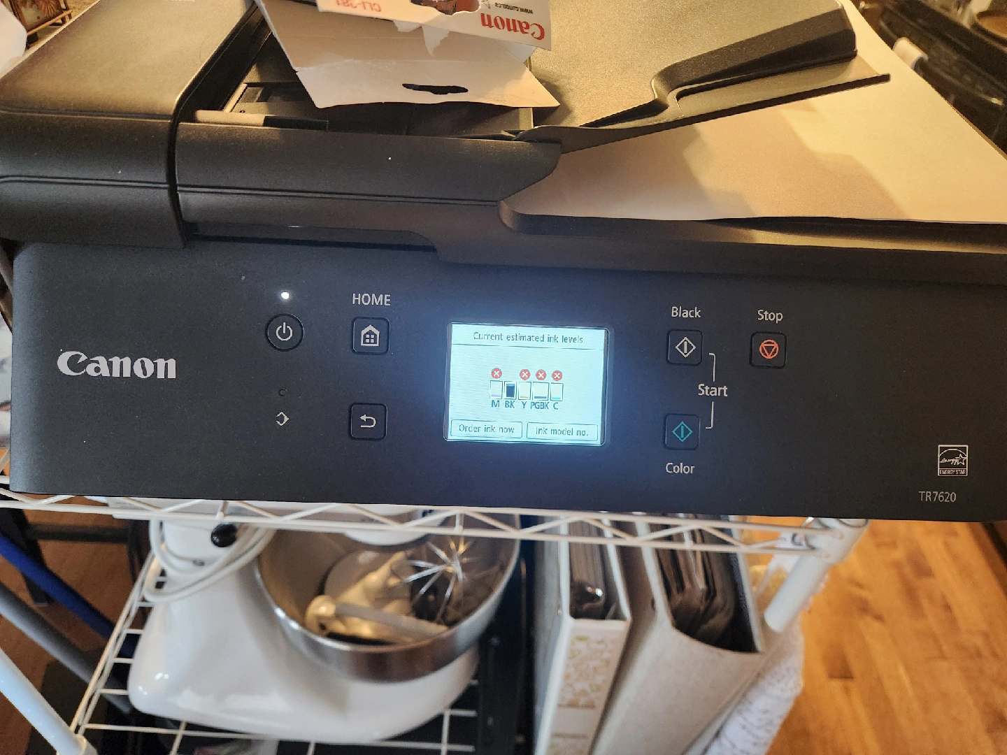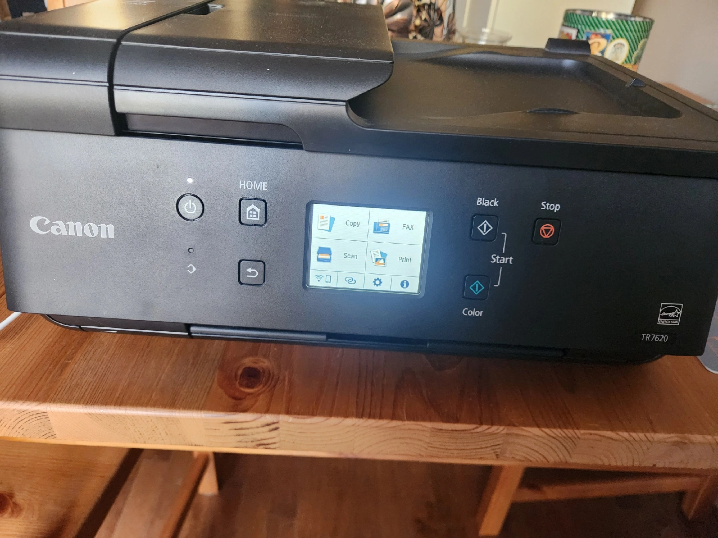 10Selling a Canon TR7620 all-in-one printer. Colour cartridges are empty but the black is almost 3/4 full. It's in great shape and ready to go ... works great. It has print, scan, and copy functions. Also included is an extra Canon 281 black ink cartridge. Selling as we bought a different printer. Functionality can be tested when picked up. $60 or best offer.