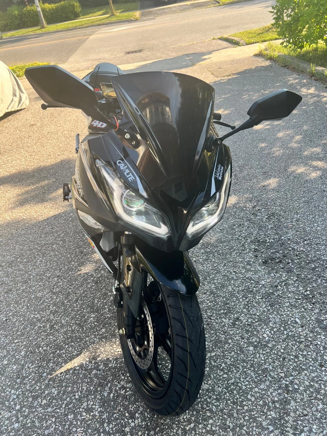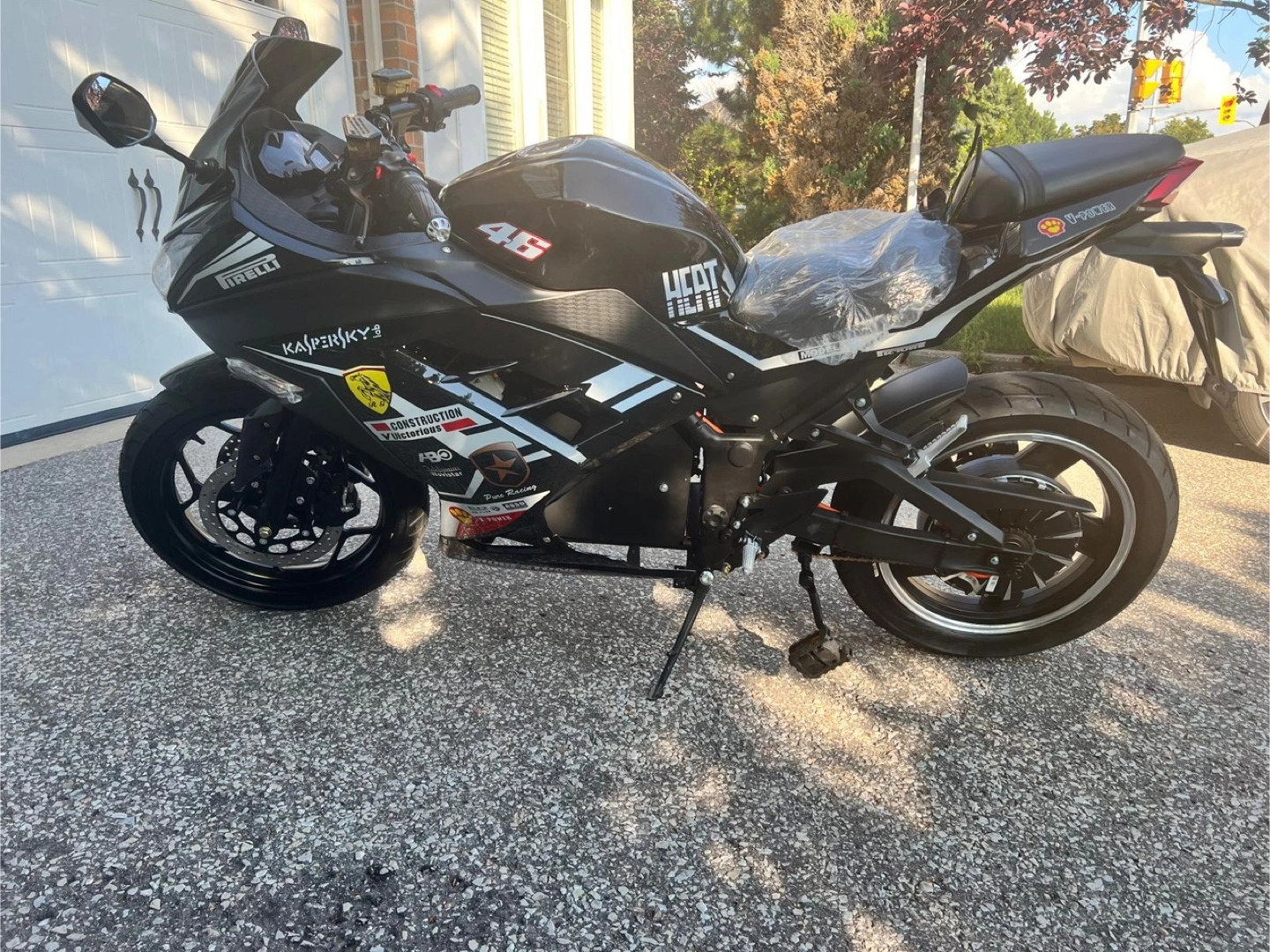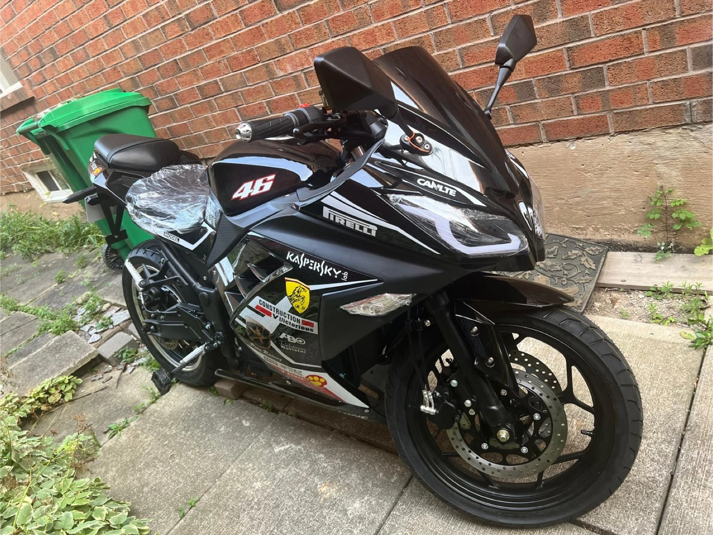 Black CANTE 250cc motorcycle. Features Pirelli tires and a number 46 graphic. Looks new. Ready to ride.