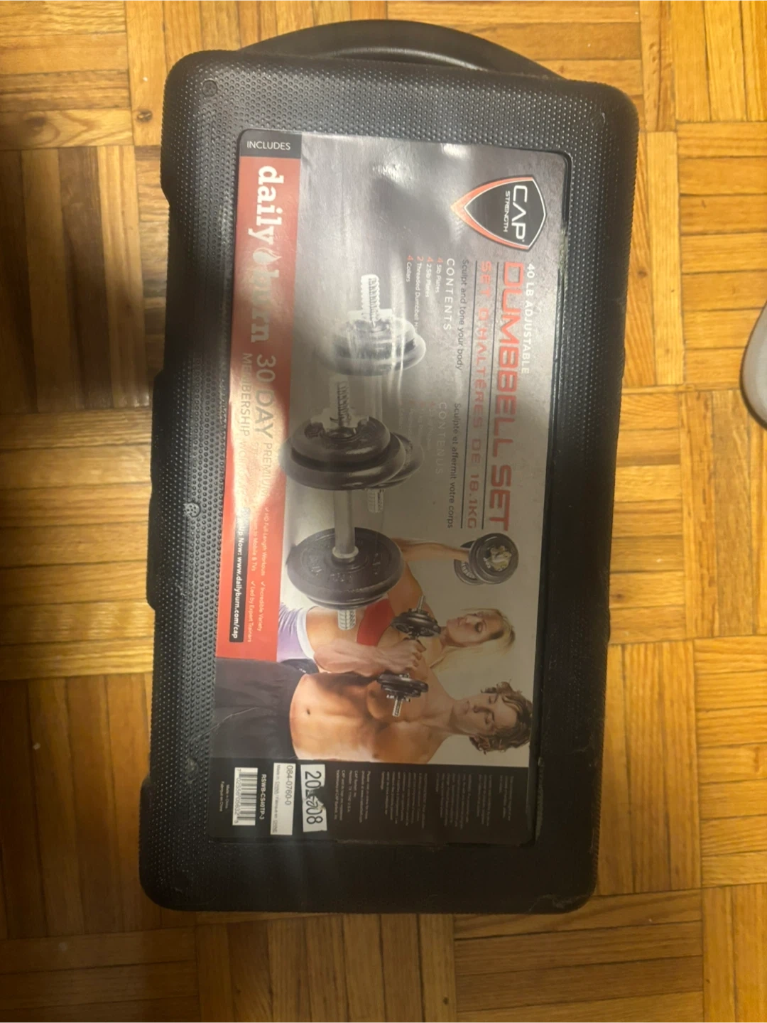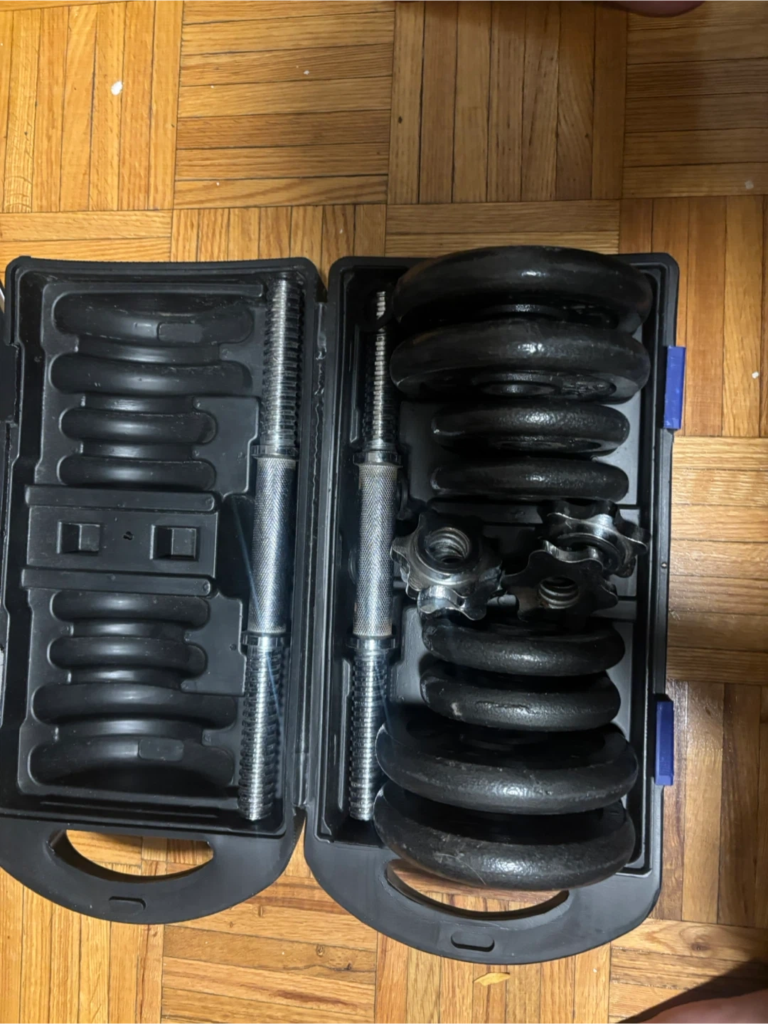 55Selling a CAP 40 lb adjustable dumbbell set. It comes in a convenient carrying case, making it easy to store and transport. Perfect for at-home workouts!