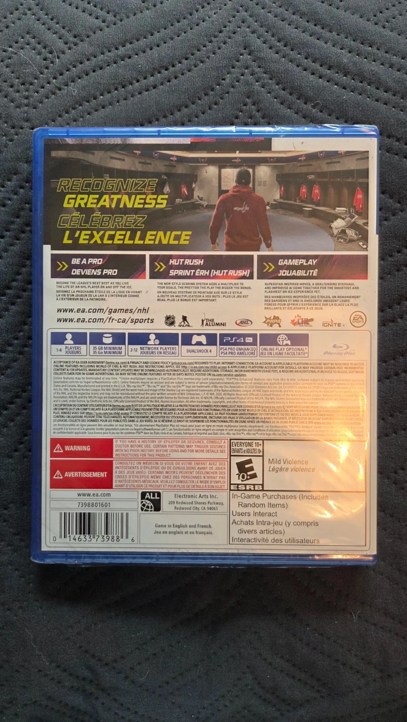 NHL 21 for PS4. It's the latest installment in the EA SPORTS hockey franchise. Features HUT Rush and other game modes.