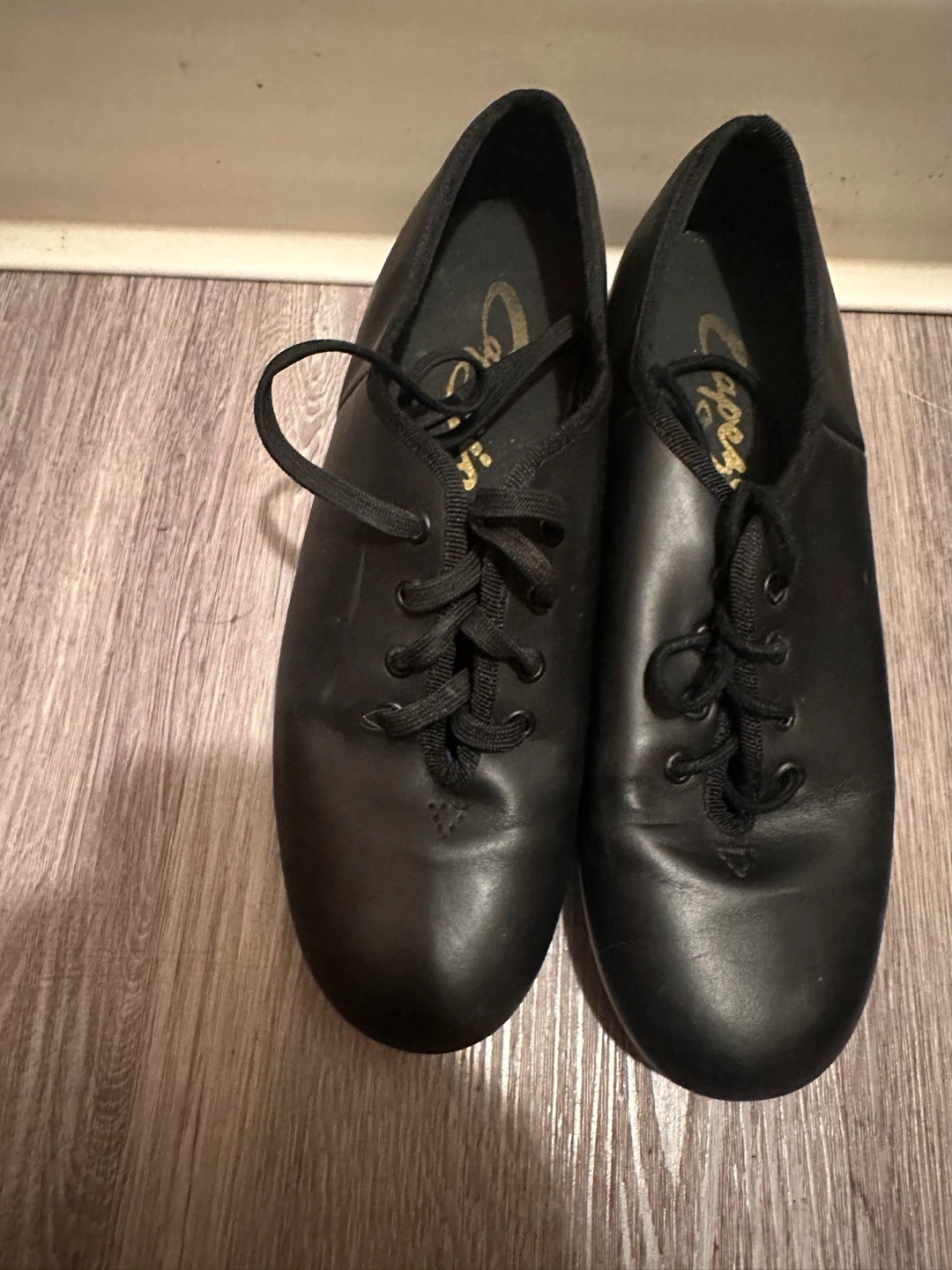 Selling a pair of Capezio black leather tap shoes. They are in good condition and ready for their next performance! Perfect for dance classes or recitals