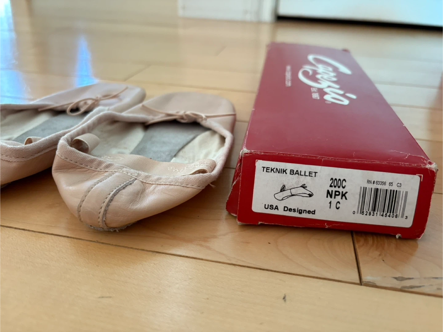 Capezio Teknik Ballet shoes in size 1C. These are USA designed and come with the original box. Perfect for your little dancer!