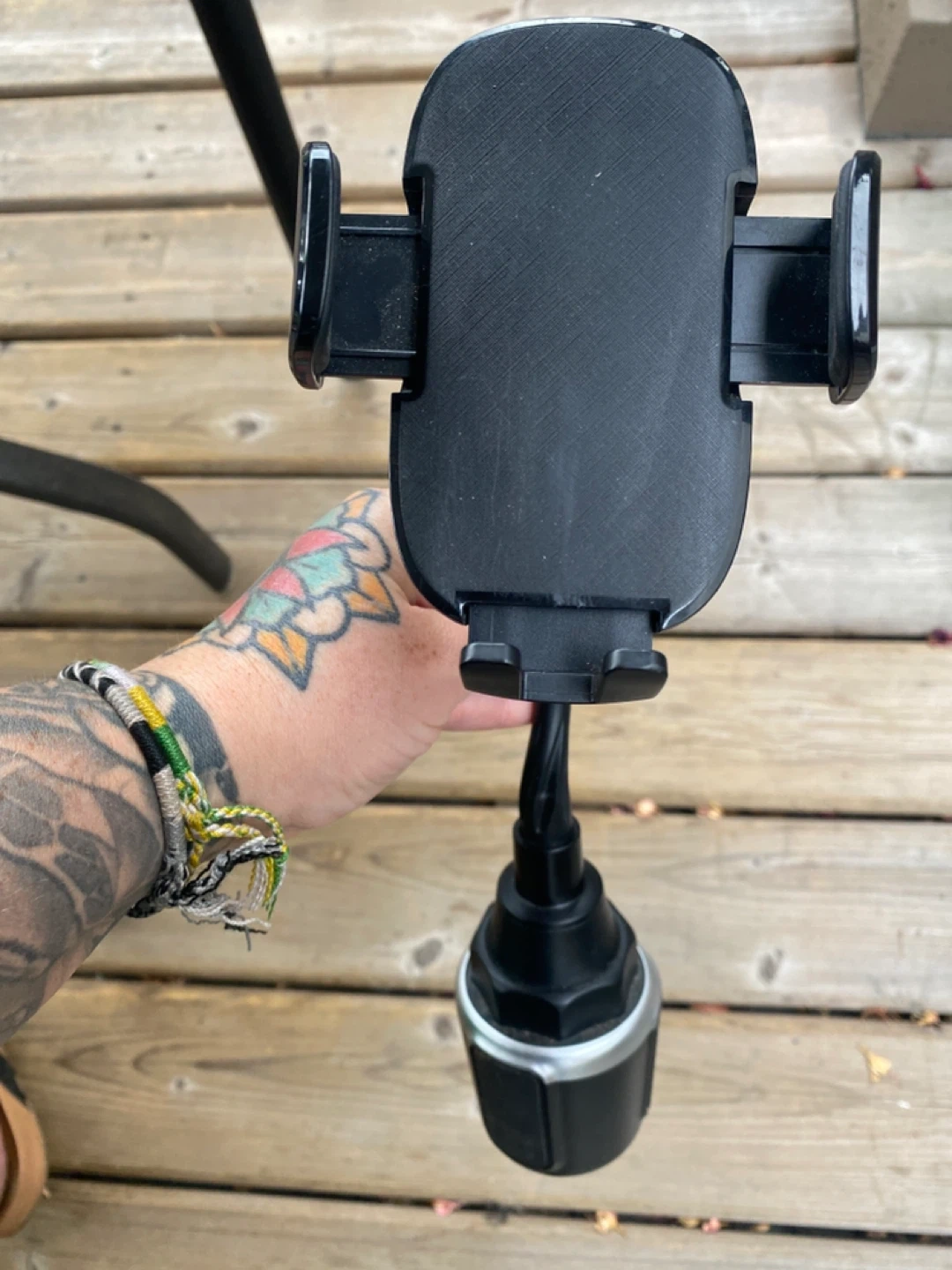 Selling a car cup holder phone mount. It's black and in great shape, ready to hold your phone securely while you drive. Perfect for hands-free navigation and calls!