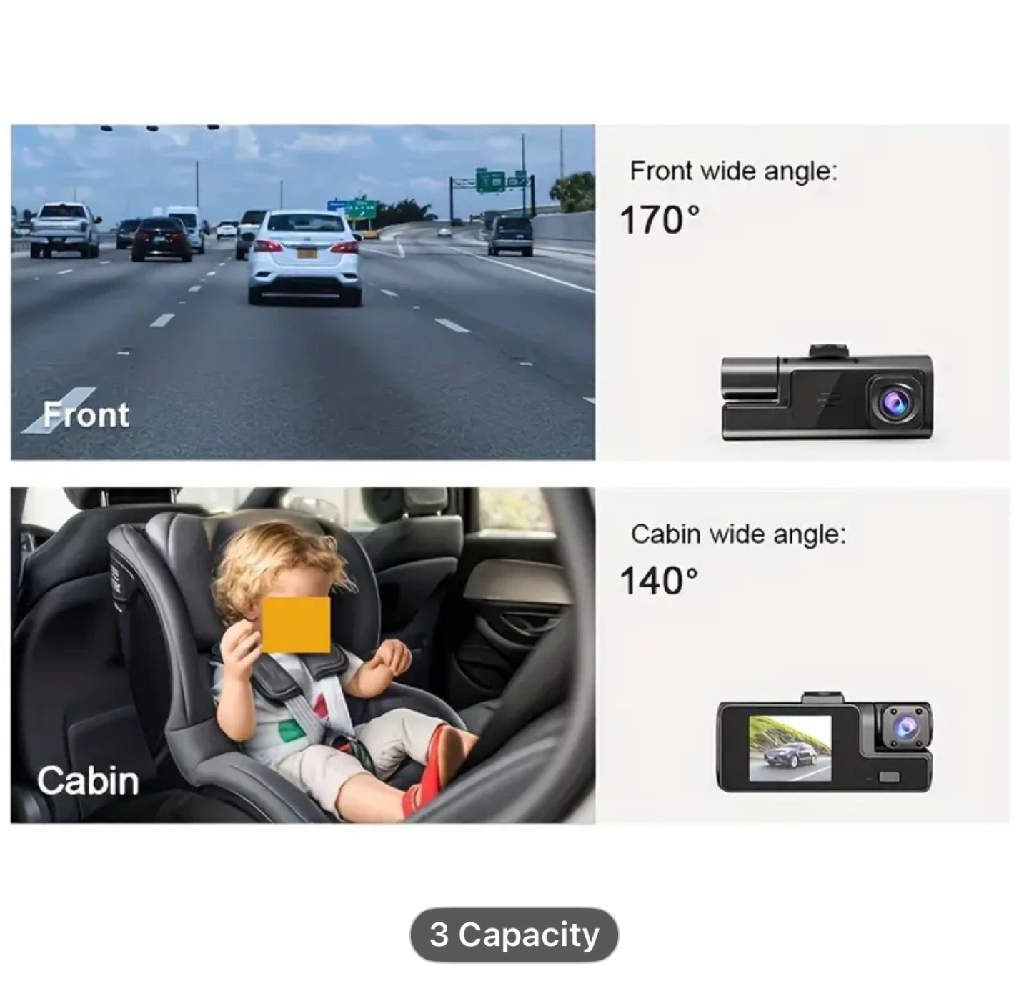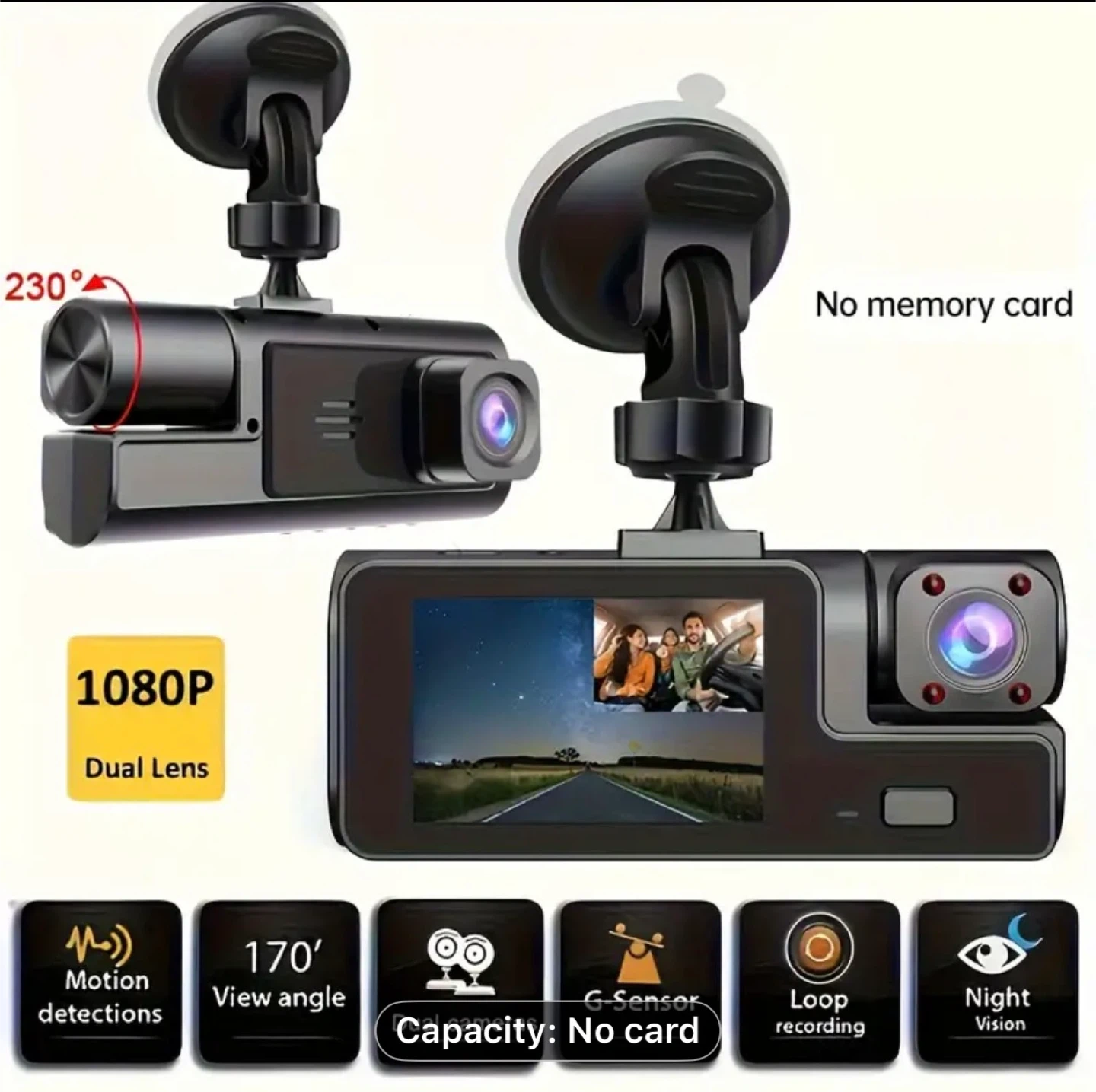 63Car Dash Cam with Memory Card Included, Optional Without Memory Card, 1080P Front Camera, 720P Rear Camera, Infrared Night Vision, Loop Recording