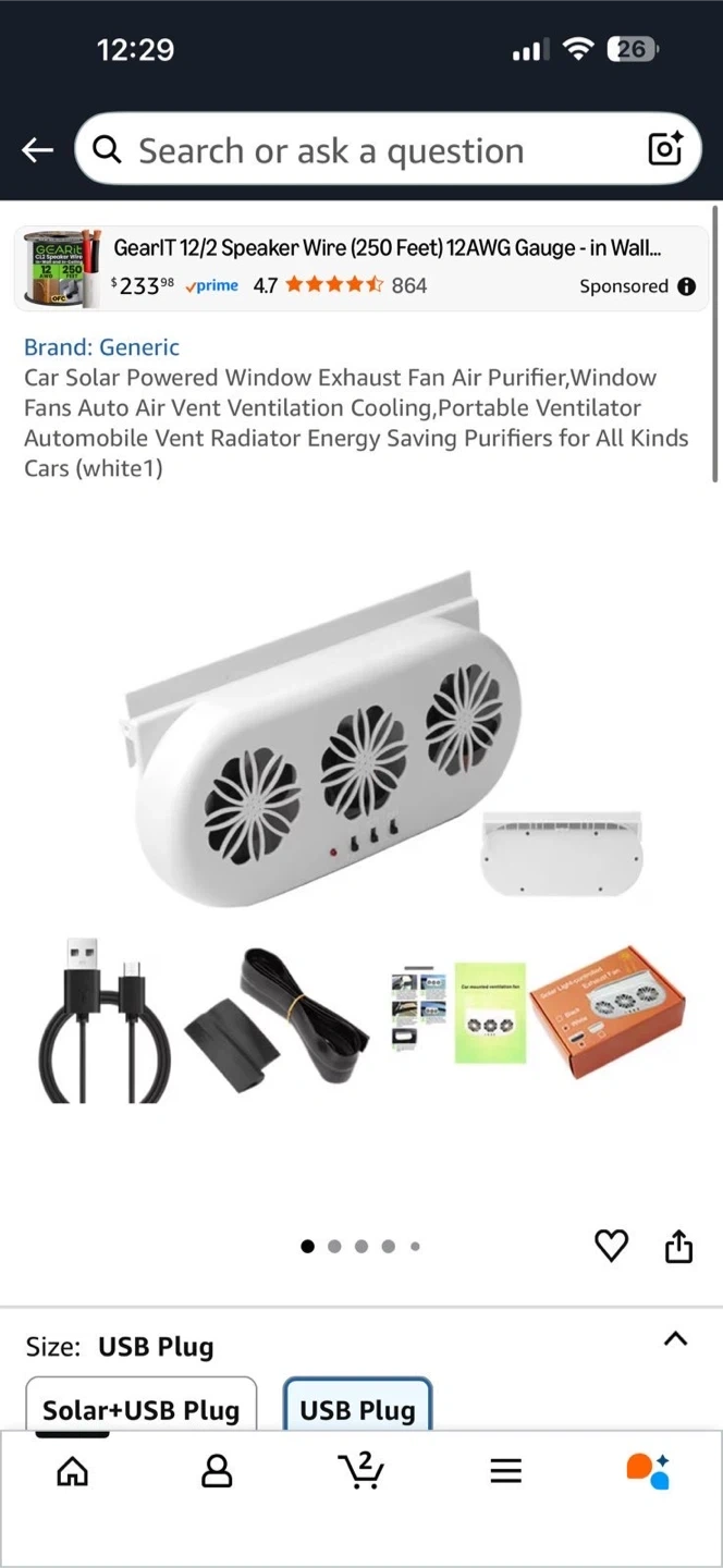 34I'm selling a car solar powered window exhaust fan. It's a portable ventilator for automobile air vent ventilation and cooling. It comes with a USB plug. It's in great condition and ready to use!