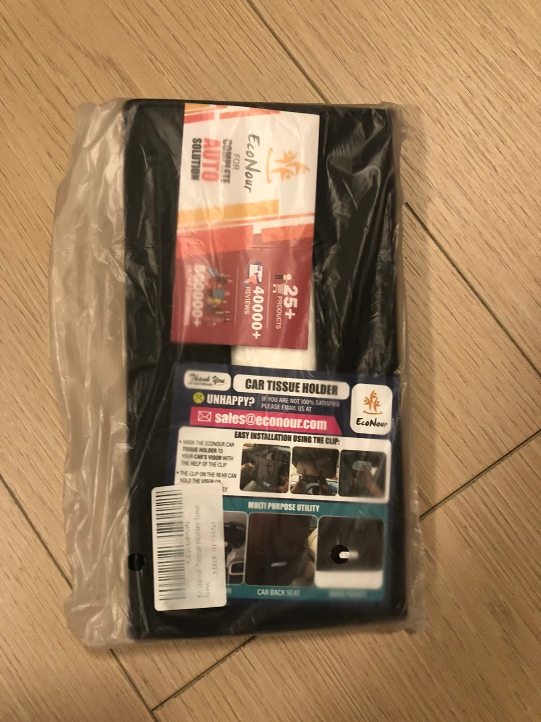 15EcoNour Car Tissue Holder 9 x 5 inches - Black Sun Visor Napkin Holder - Tissue and Disposable Mask Holder for Car - Handy and Compact to Organize Your Tissues and Masks 🌸 brand new in box Can open for you to check price firm… Reach your Masks Easily: EcoNour Face Mask Holder for Car can be used to keep your masks, napkins, paper towels which will be at your hand reach, safe driving without distraction. You can extract your tissues more easily. Perfect Design and Classy Look: This face mask car holder is made out of PU leather that keeps your tissue, napkins, and masks in an organized manner. Our mask holders feature a perfect cutout to remove the tissues as well as a Velcro to refill the tissues. Fix the Tissue Box Holder Anywhere Inside the Car: Our Car Face Mask Holder measures 9 inches in length and 5 inches in height, suitable for most cars. Can be fixed on the car sun visor, car door, car backseat, etc. Disposable Car Mask Holder: No more worries about forgetting your mask. Putting our visor mask holder in your car always reminds you and your family to wear a mask. Our face mask holder is a must-have car accessory to organize your tissues. Easier to Install by Using the Rear Clips: The installation is very simple, hook the face mask holder to your car’s visor with the help of the rear clip. The clips will hold onto your car’s visor tightly (Note: The maximum size of the tissue must be 7.8 inches in length, 3.9 inches in height).