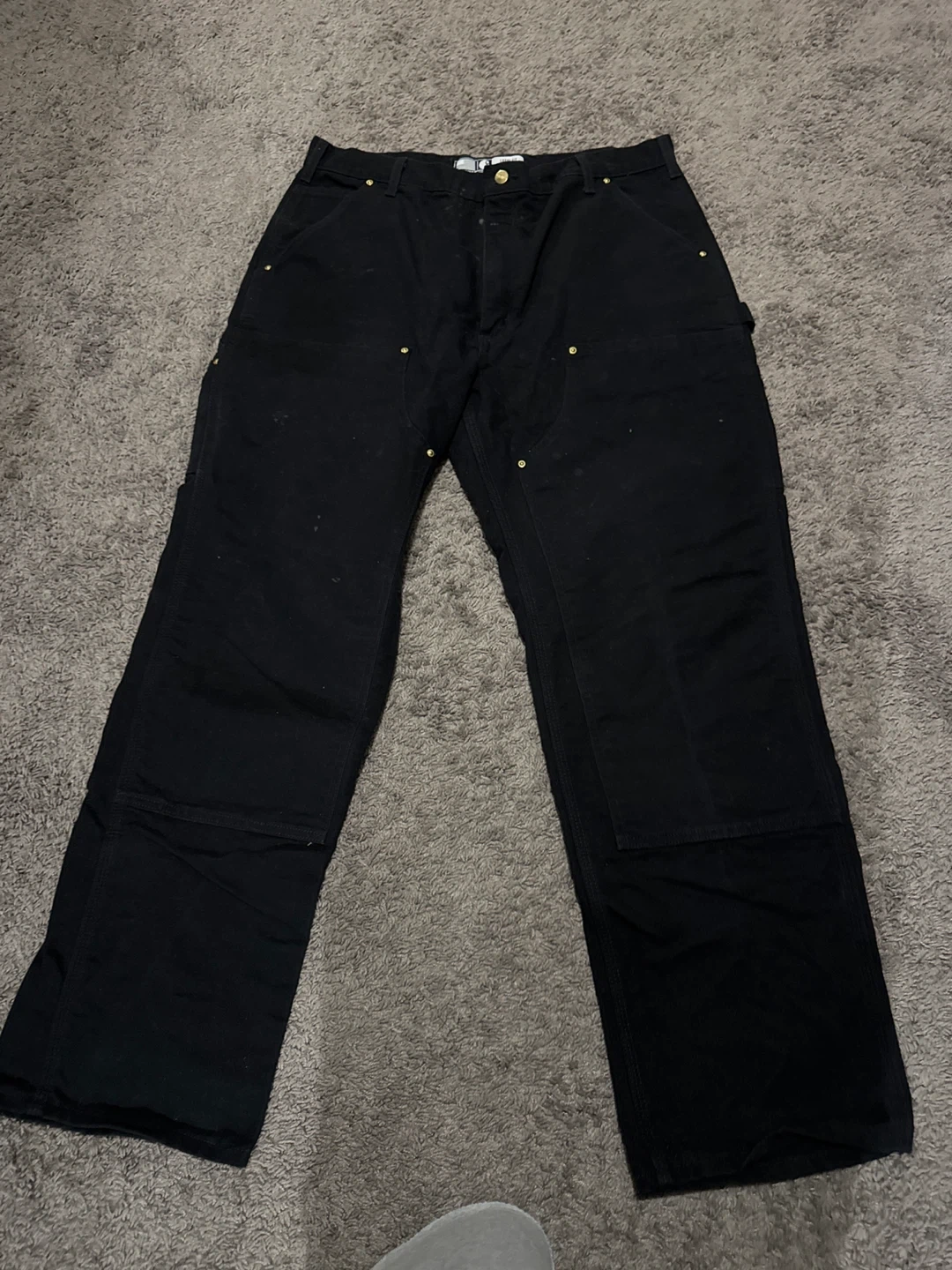 60Selling a pair of Carhartt B01-BLK pants in black. They're size 38 x 32 and made of 100% cotton. These are the original fit!