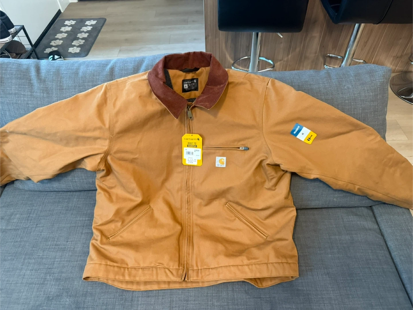 Selling a Carhartt Duck Blanket-Lined Detroit Jacket in size XL. This jacket features a relaxed fit and is designed to be hood compatible. It's a warm and durable jacket, perfect for serving and protecting all hardworking people. It retails for $174.99. I’m asking $120. Pickup in Silverado. Delivery is available for a small gas fee.
