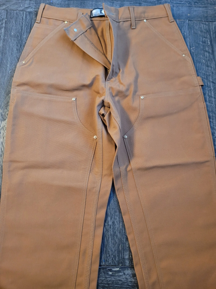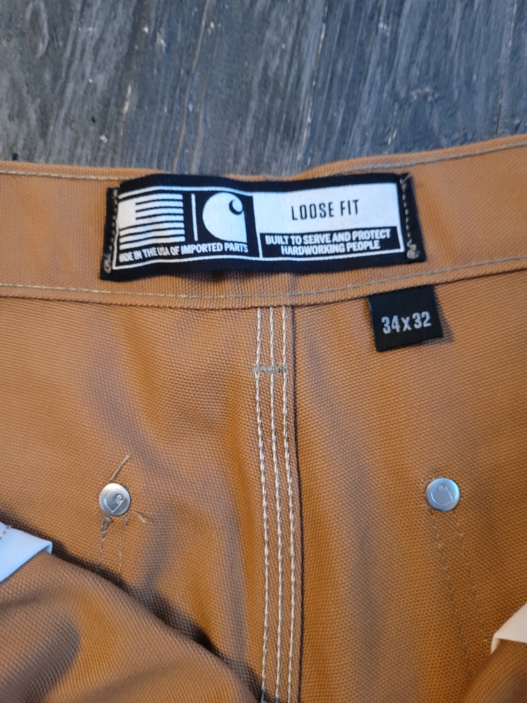 57Men's Carhartt brown duck work pants. Loose fit. Size 34x32. Multiple pockets. Durable cotton canvas. tags removed but never worn. brand new.