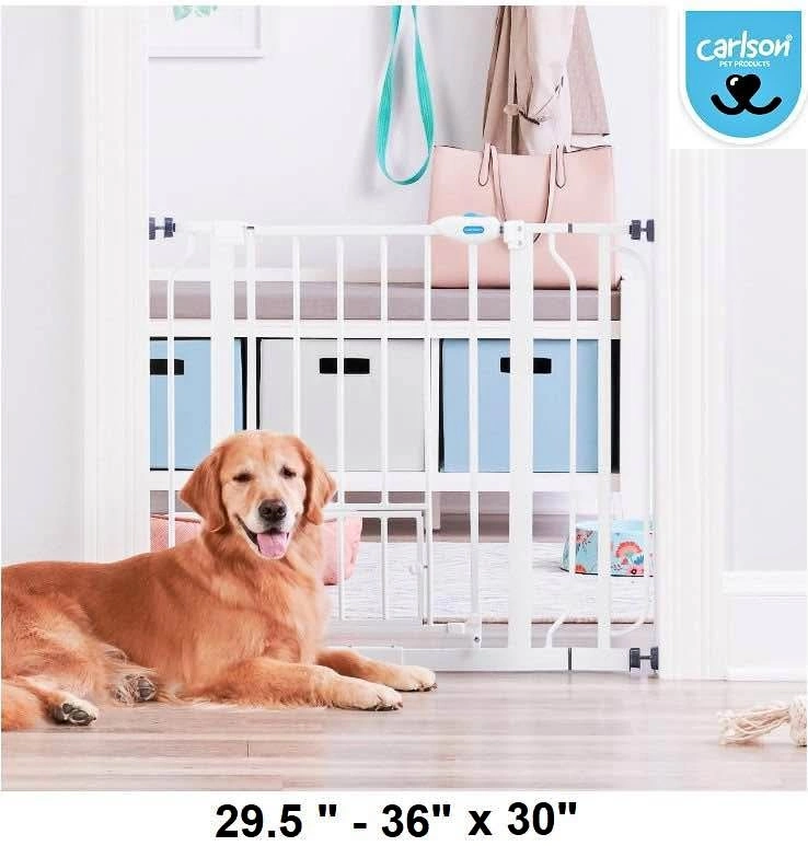 CARLSON Pet Gate w/ Small Pet Door - 29.5"-36" x 30" - White