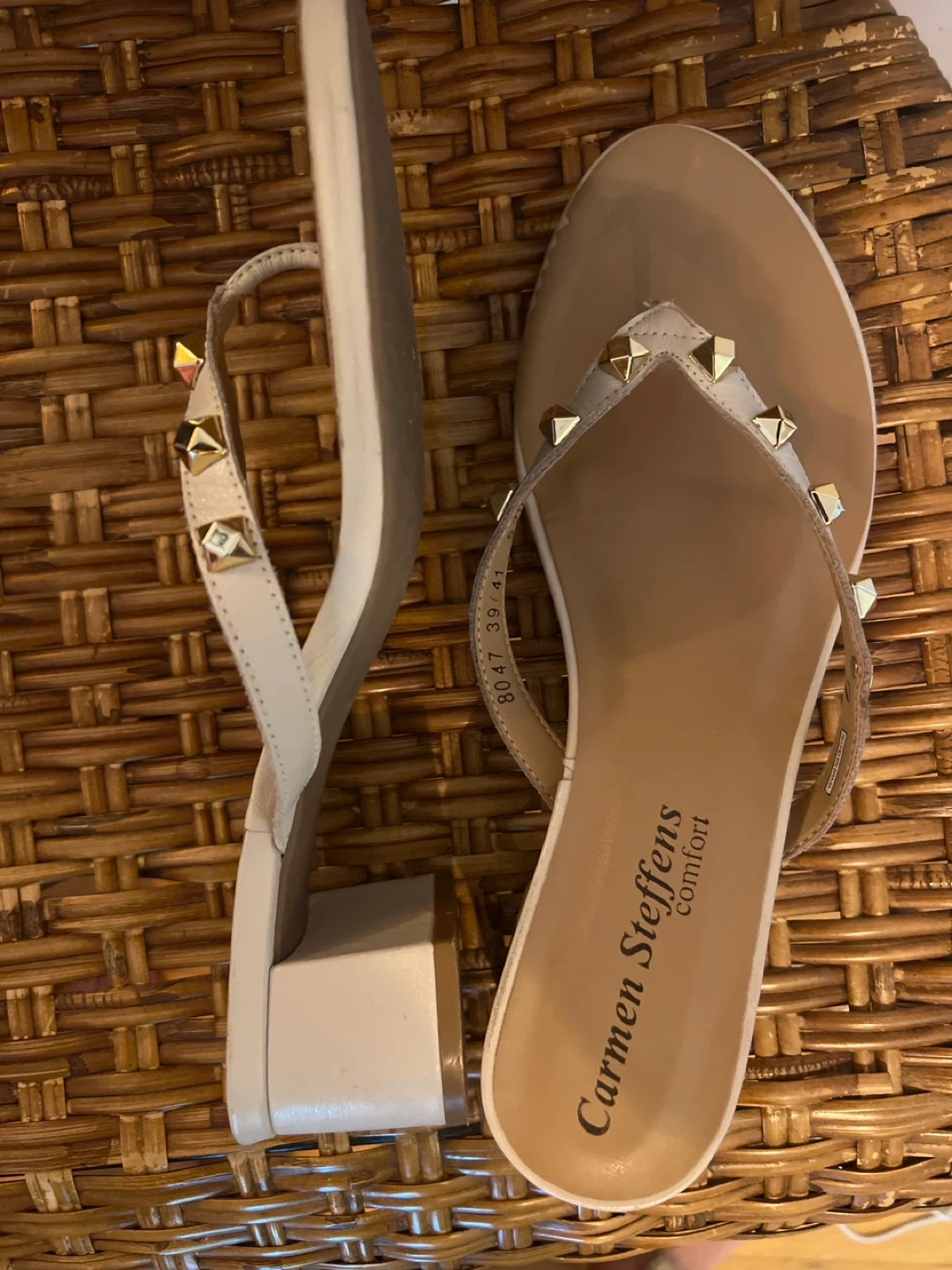 18Selling a pair of Carmen Steffens Comfort sandals. They are a size 39/41. These sandals feature a stylish design with gold stud detailing. Perfect for adding a touch of elegance to your summer wardrobe!