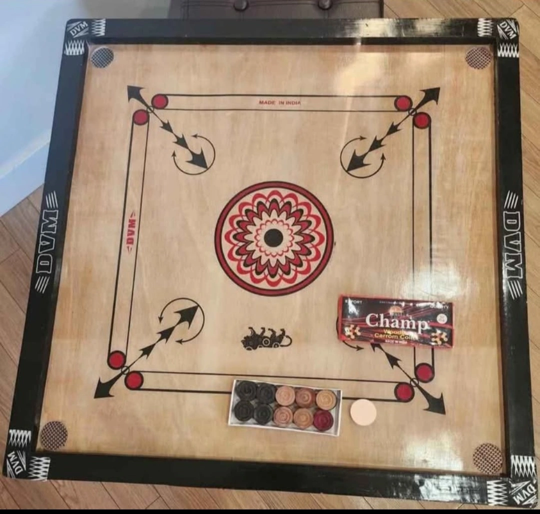 Selling a carrom board game, perfect for family fun! It comes with all the pieces you need to play. The board is in good condition and ready for a new home. Great for game nights!