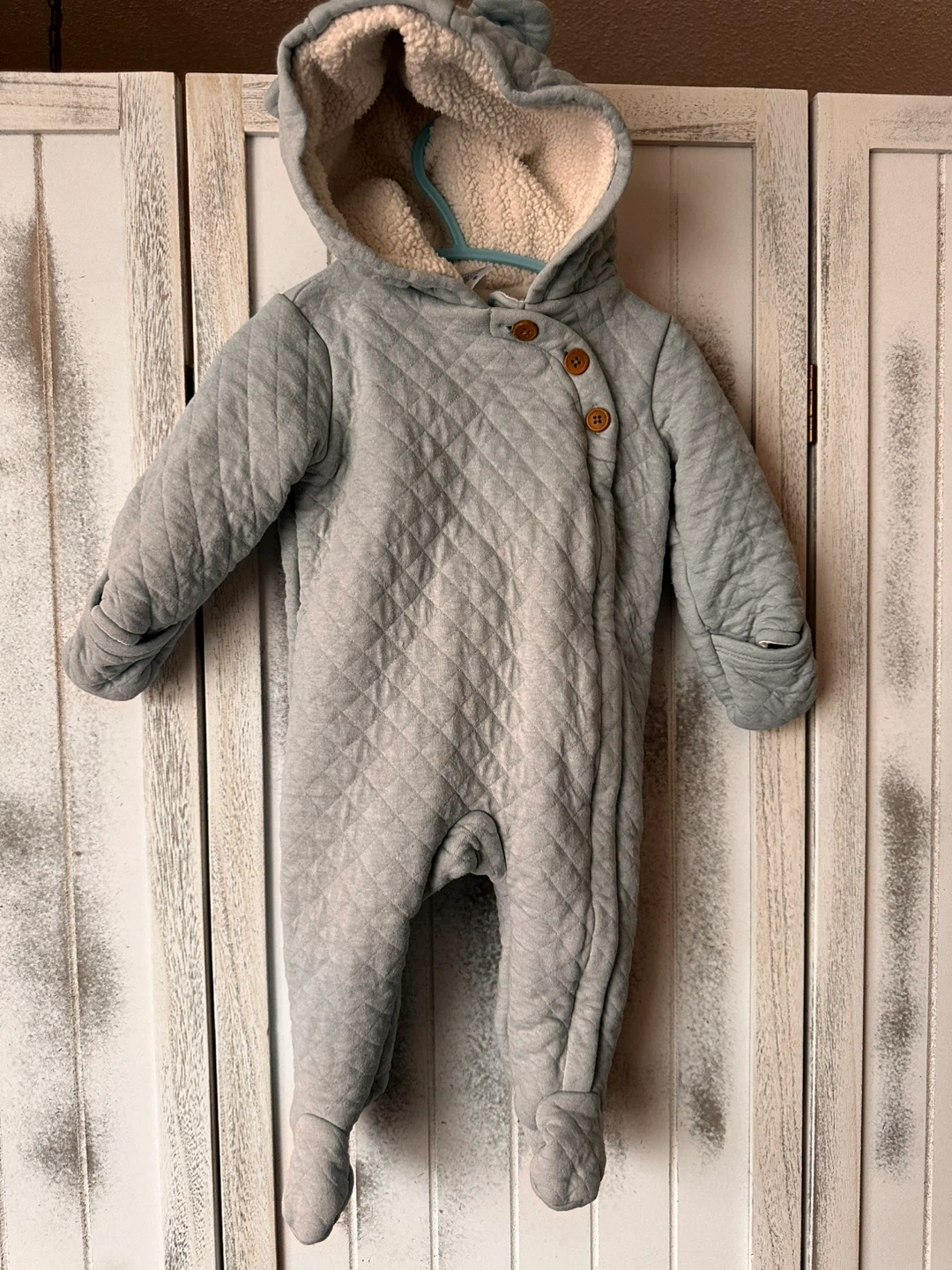70I'm selling a Carter's pram suit in size 6 months. It's a lovely quilted design with a soft, cozy lining. Perfect for keeping your little one warm and snug!