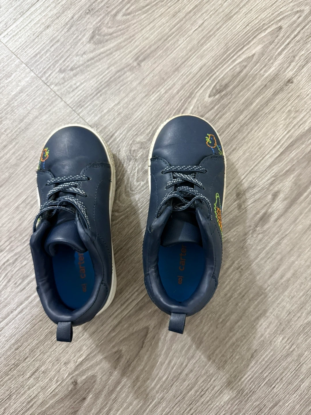 10I'm selling a pair of Carter's toddler shoes in size 8M. They are a nice navy blue colour and have cute dinosaur designs on the sides. They are in great condition and ready for a new home!