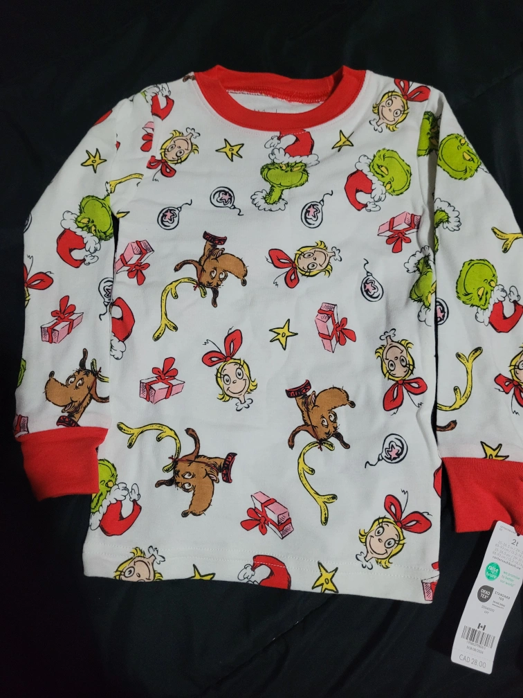 These Carter's Grinch pajamas are brand new with tags! They're a size 2T and feature a fun Grinch print. Perfect for the holidays!