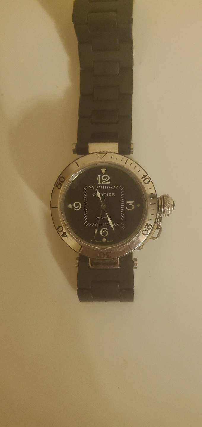 15This Unisex Cartier Pasha Seatimer Automatic watch. It has a black band and some signs of wear, but is still in good condition. I'm the 2nd owner after my mom who had it for 4 years...I've had it 2 years...very well taken care of and never serviced...has been a worry free timepiece and very accurate when it's worn...Thank You for your interest.