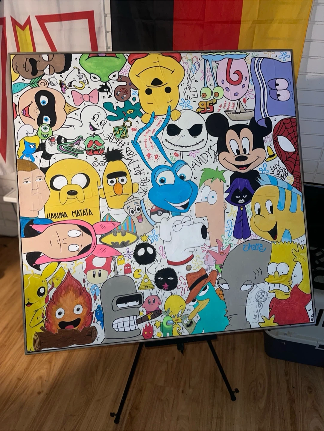 23Not sure if anyone would be interested, but I figured I’d give it a shot! 🎨 I also do custom paintings, so feel free to check out Not Creative Designs! This piece took me months to finish, and I’m open to negotiating the price—just please no lowball offers. I know at first glance it might not look like much, but it’s one of those paintings where the longer you look at it, the more details you notice. I put “used-like new” because it is a canvas that has been recycled! There was a painting under it then the prior owners covered it with spackle and painted it white. Approximately 90cm both ways Cash only