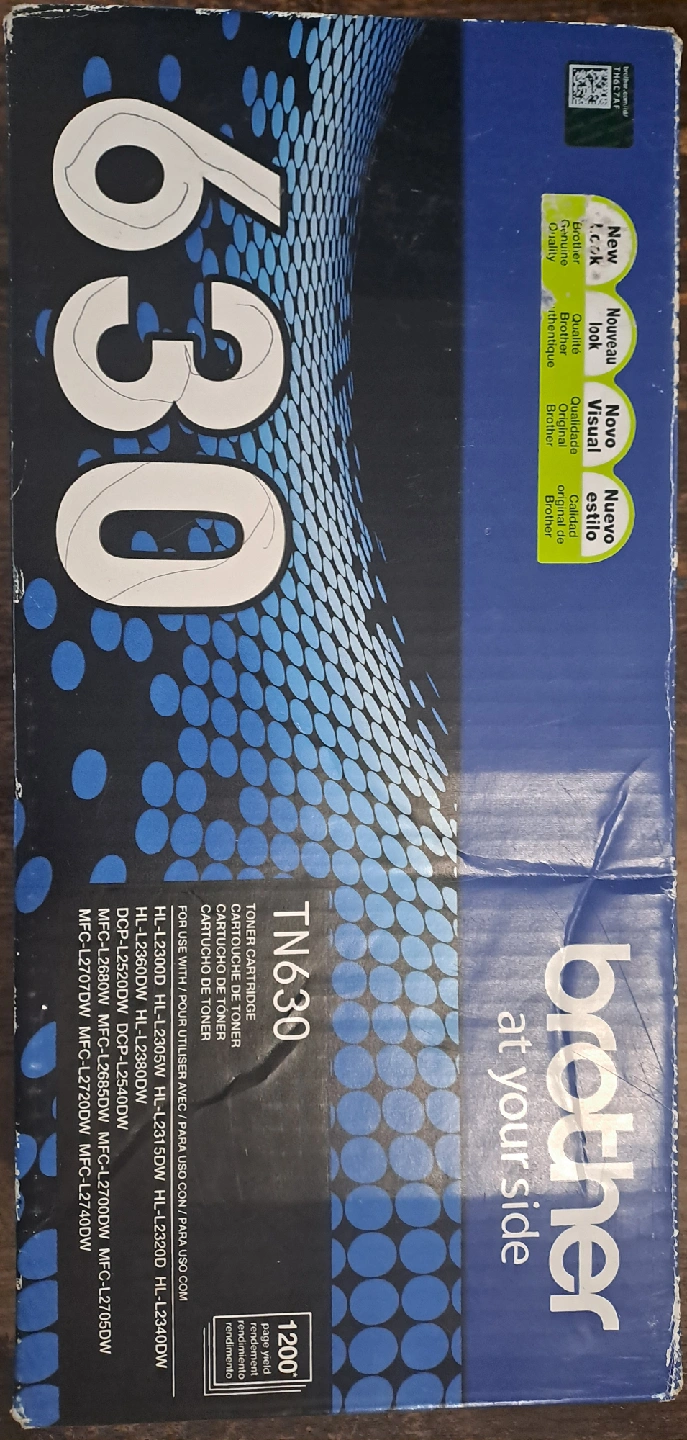 J'ai une cartouche d'encre Brother TN630 neuve dans sa boîte d'origine. C'est une cartouche d'encre noire authentique Brother. Elle est compatible avec plusieurs modèles d'imprimantes Brother, notamment HL-L2300D, HL-L2305W, MFC-L2707DW, etc.🥕