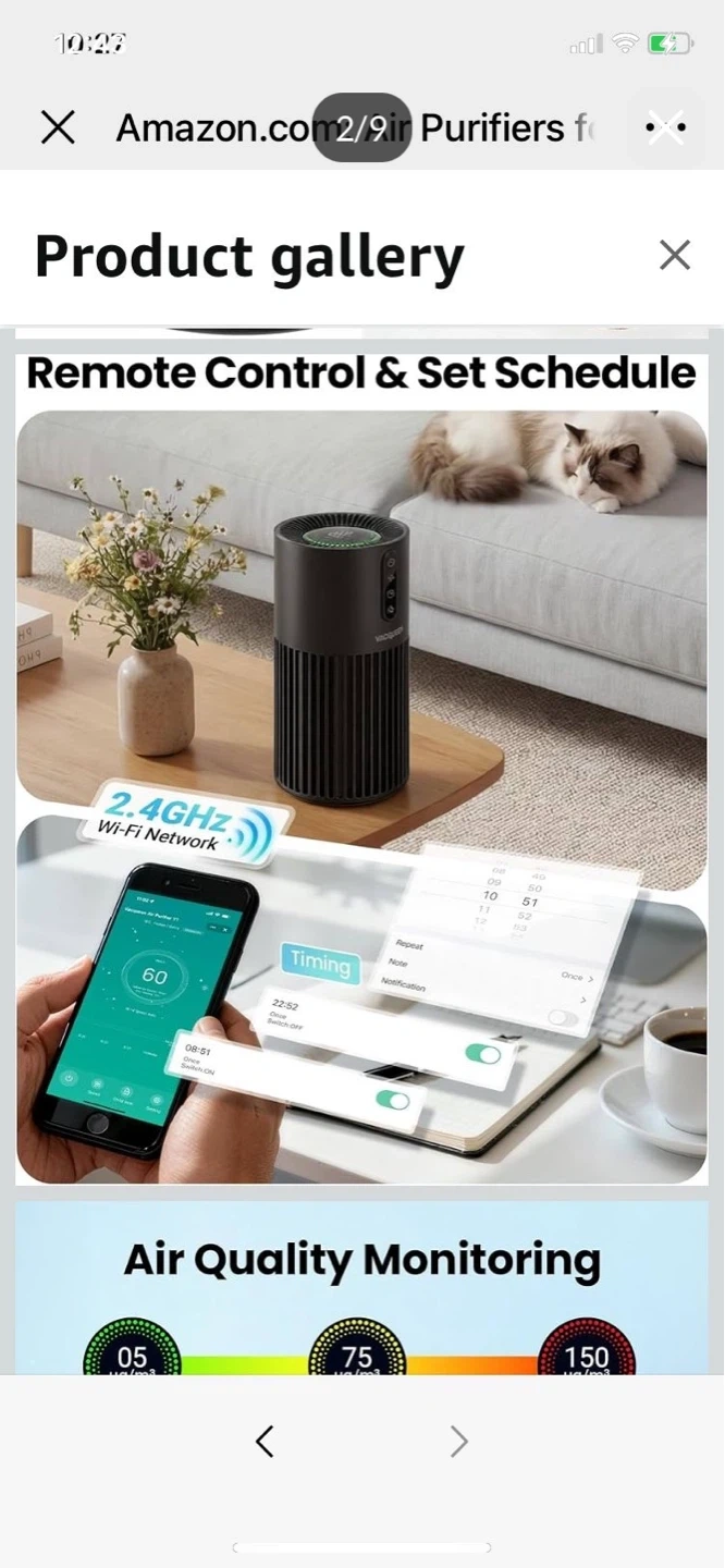 Brand New - VACQUEEN air purifier with 3-stage filtration and 99.97% filtration efficiency. It features remote control, scheduling via a 2.4GHz Wi-Fi network, and air quality monitoring and washable filters;Safety certified for home and pets.