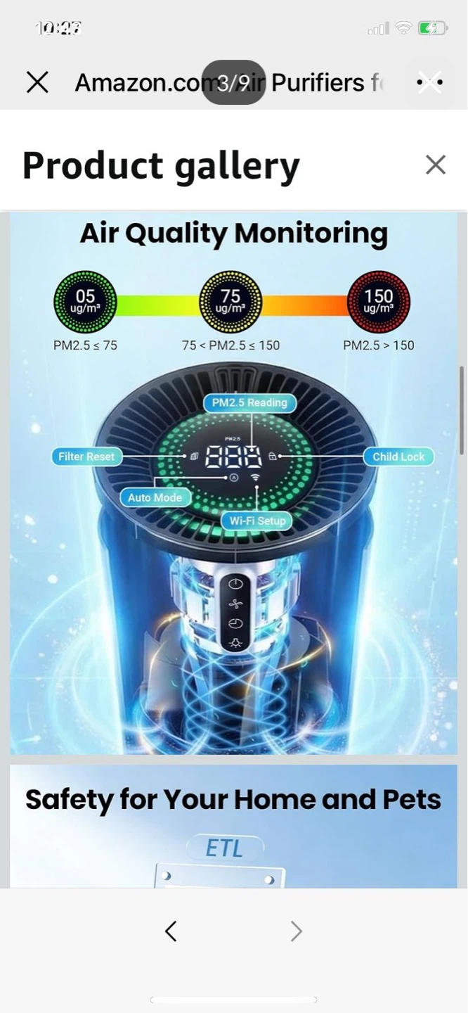 Air Purifiers for Bedroom, Smart WiFi HEPA Air Purifier for Home Pets, Timer and Alexa Control, Cover 1800 Ft², PM2.5 Monitor, Sleep Mode, Washable Filter Air Cleaner for Pet Hair Odors Smoke Dust.