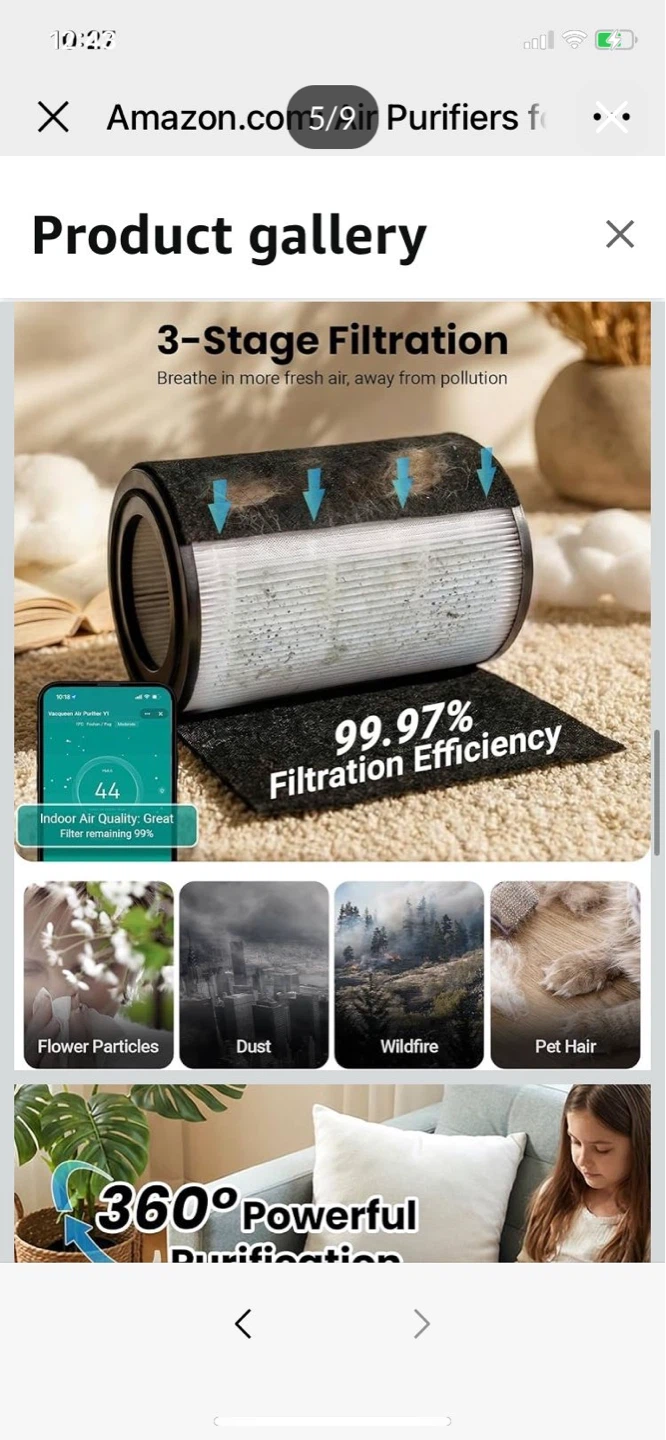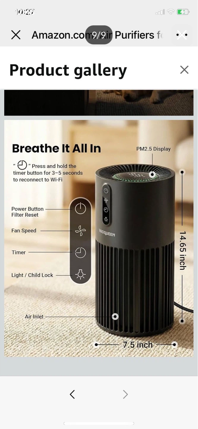 Brand New - VACQUEEN air purifier with 3-stage filtration and 99.97% filtration efficiency. It features remote control, scheduling via a 2.4GHz Wi-Fi network, and air quality monitoring and washable filters;Safety certified for home and pets.