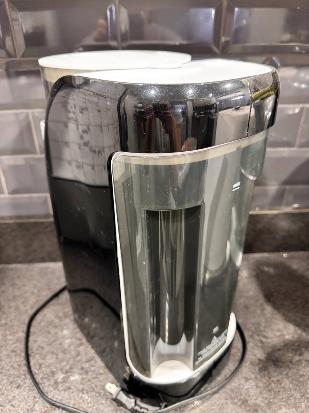 Removable water tank holds 50 oz. of water and features a wide top opening that makes it easy to fill. Dishwasher-safe.
