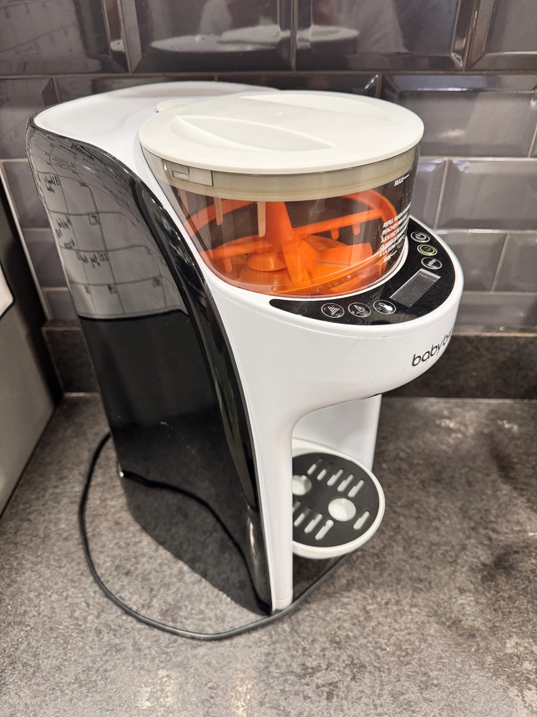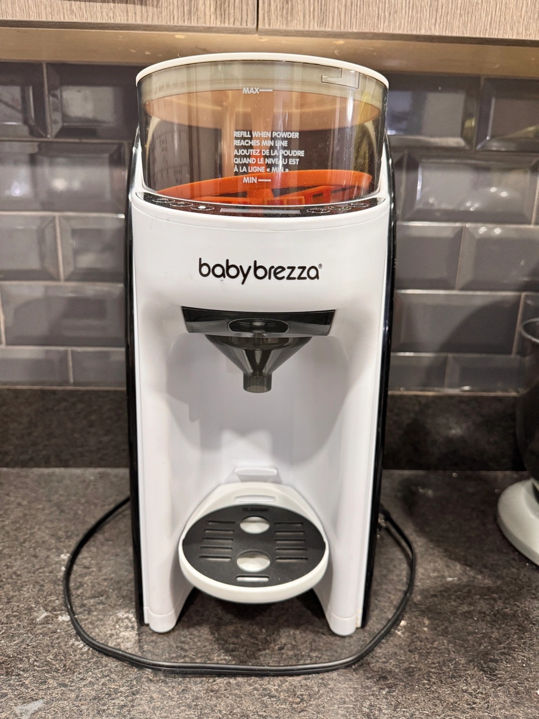 Used baby bottle maker. Makes formula quickly and easily. Great for busy parents. Includes power cord. Clean and ready to use.
