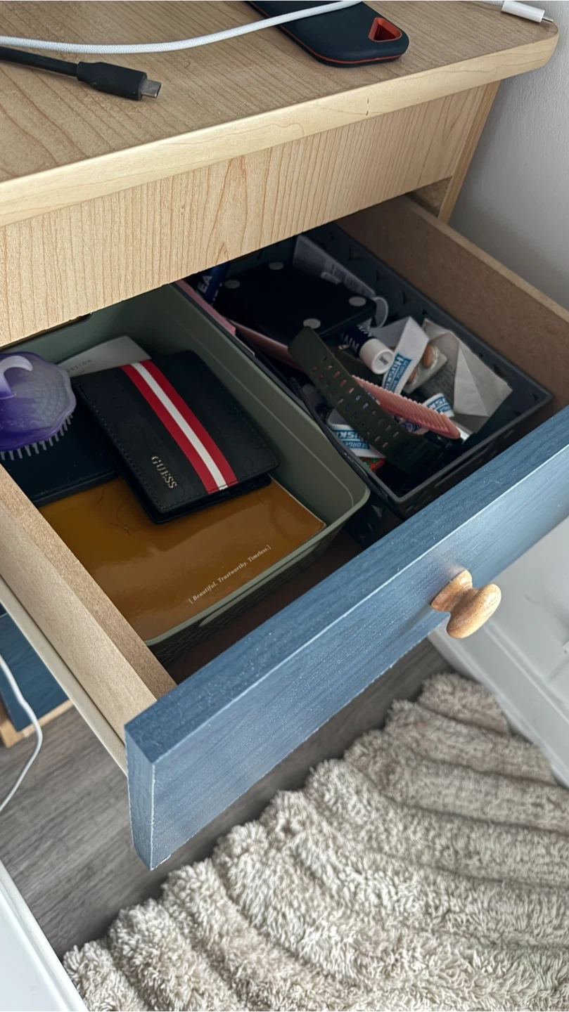Blue and Wood Nightstand with Drawers
