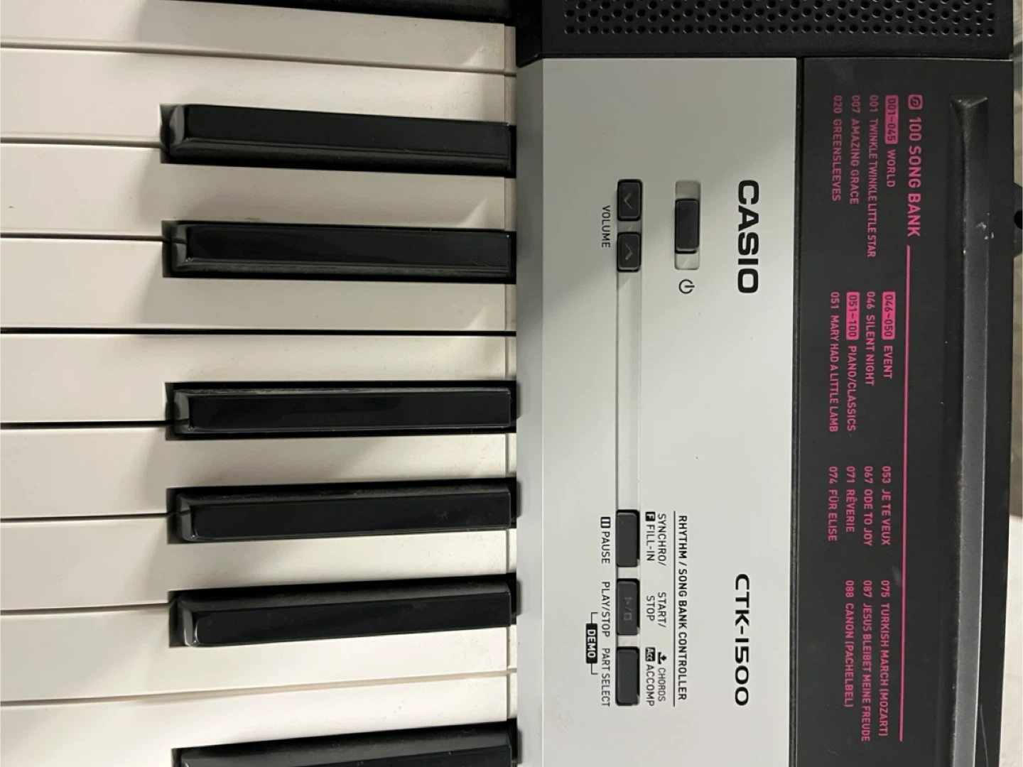 134Selling a Casio CTK-1500 keyboard. It features a 100 Song Bank and Rhythm/Song Bank Controller. Perfect for anyone looking to learn or practice playing! All cords included in price.