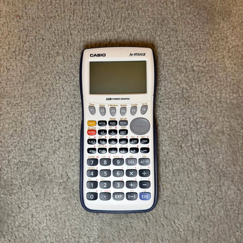 Casio fx-9750GII scientific/graphing calculator in great condition. Works perfectly and includes USB connectivity for data transfer. Ideal for high school or university math, physics, or engineering courses.