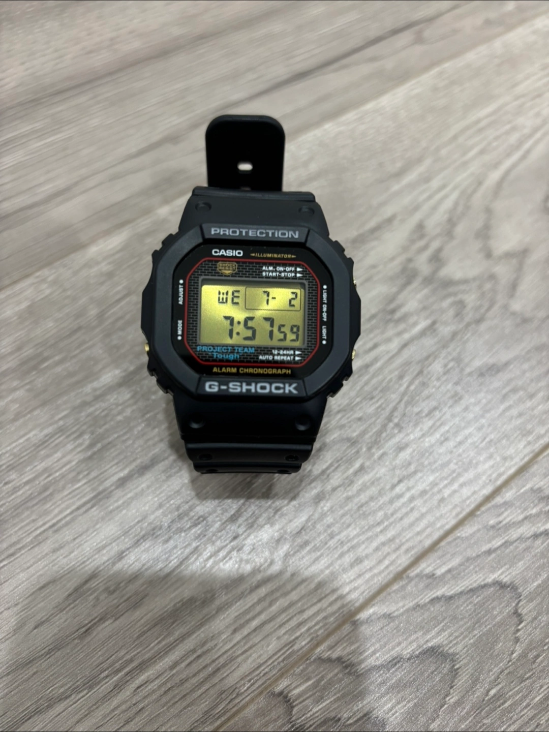Selling a Casio G-Shock DW-5040 40th Anniversary Edition watch in black with gold accents! It's a classic and tough watch that's ready for anything. Features include: - Water resistant to 200 meters - Shock resistant - Alarm and chronograph functions - Stainless steel case back