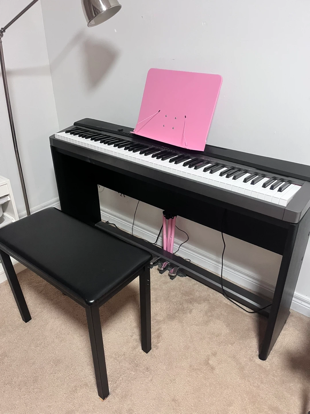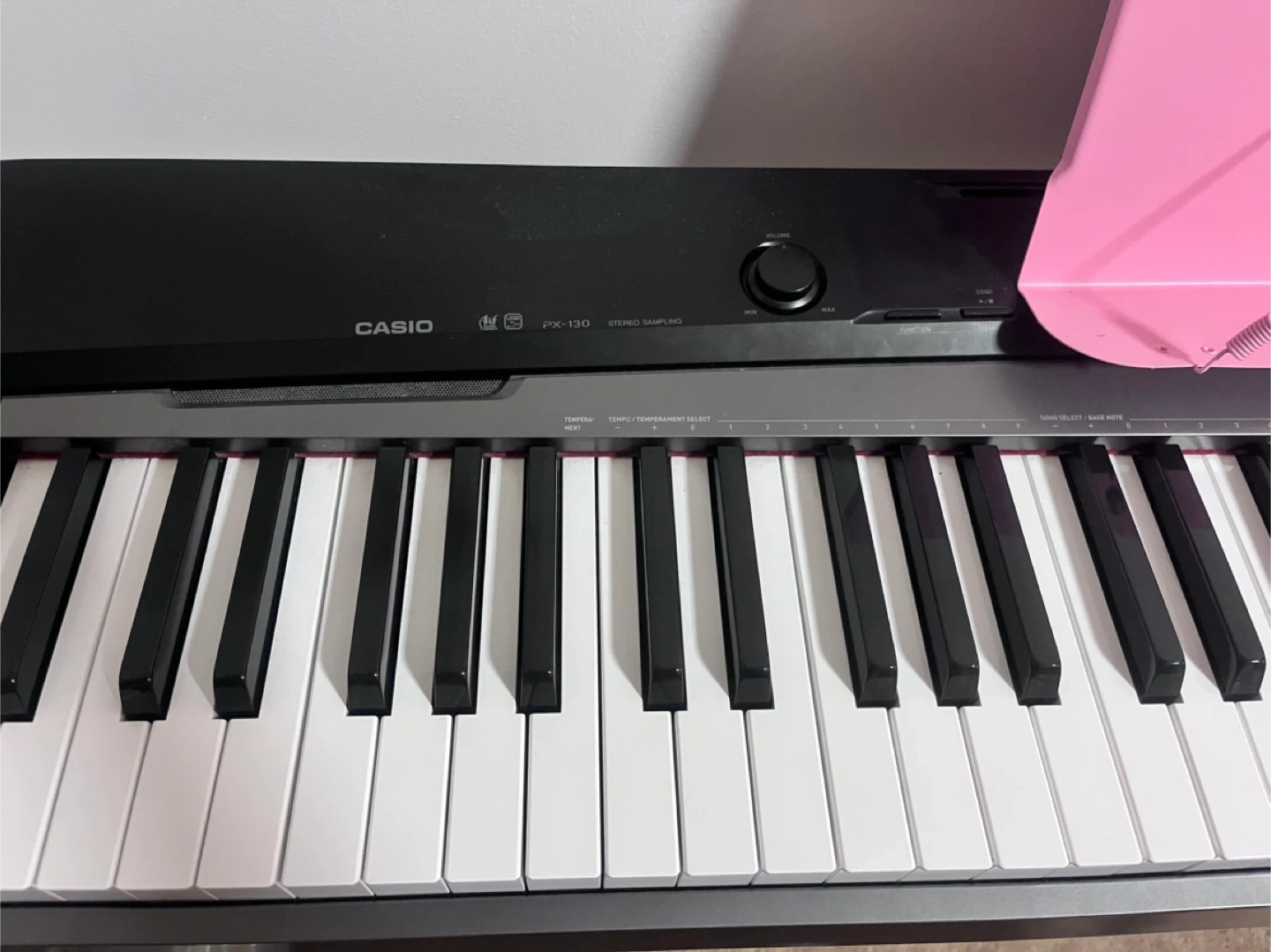15Selling a Casio Privia PX-130 digital piano! It's in great shape and perfect for anyone looking to learn or continue playing. Comes with a matching black bench and pink sheet music stand. Ready for a new home! It’s the piano my child first used, and I’m selling it because I want to upgrade to a better one. (If it doesn’t sell, we’ll just keep using it. 😂) I bought it secondhand between 2020 and 2021 for about $450, and It didn’t come with a stand at that time. It’s a perfect piano for beginners!