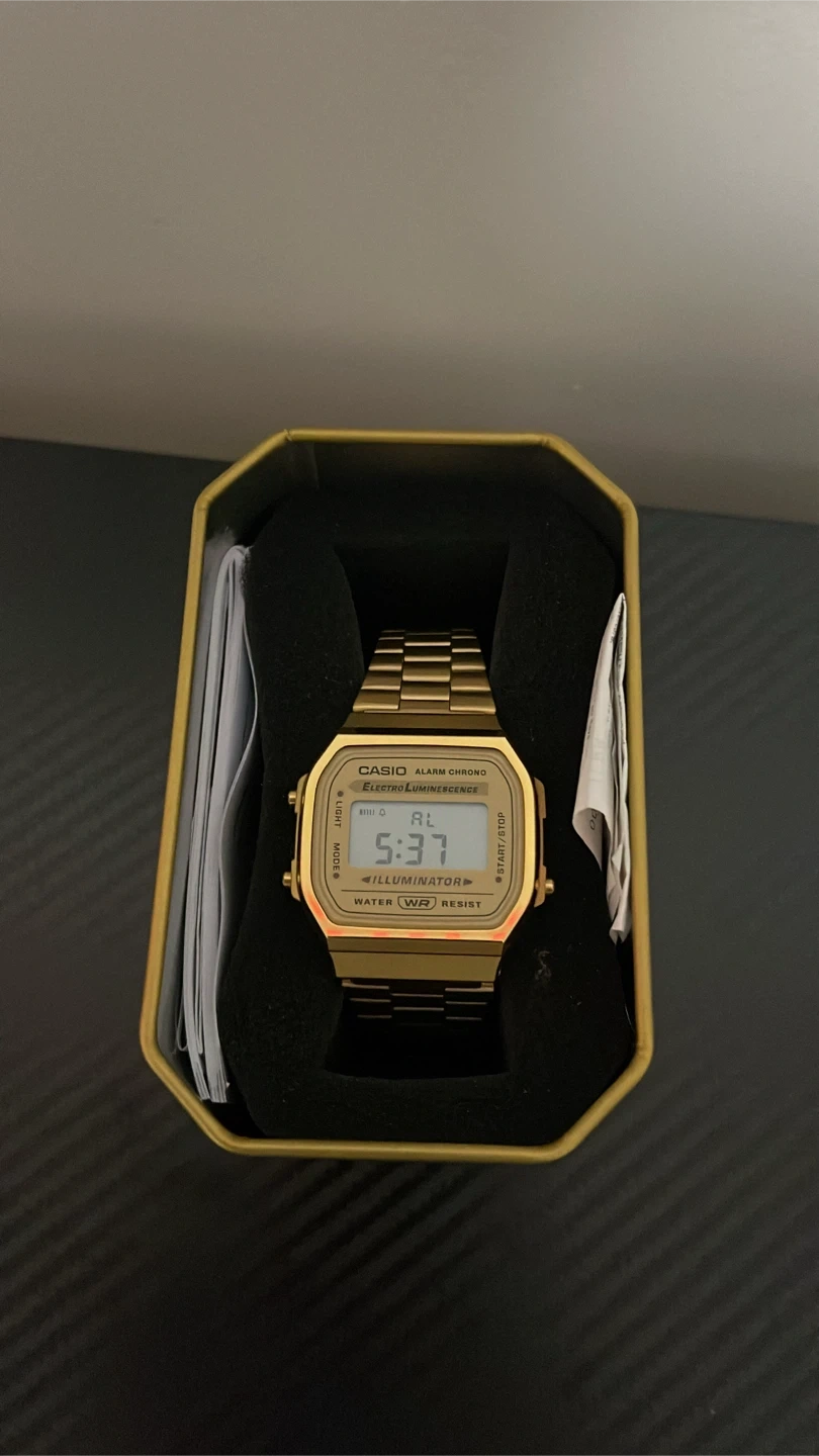 Selling a Casio Vintage Collection watch in gold. It comes with the original box and instructions. A classic timepiece!