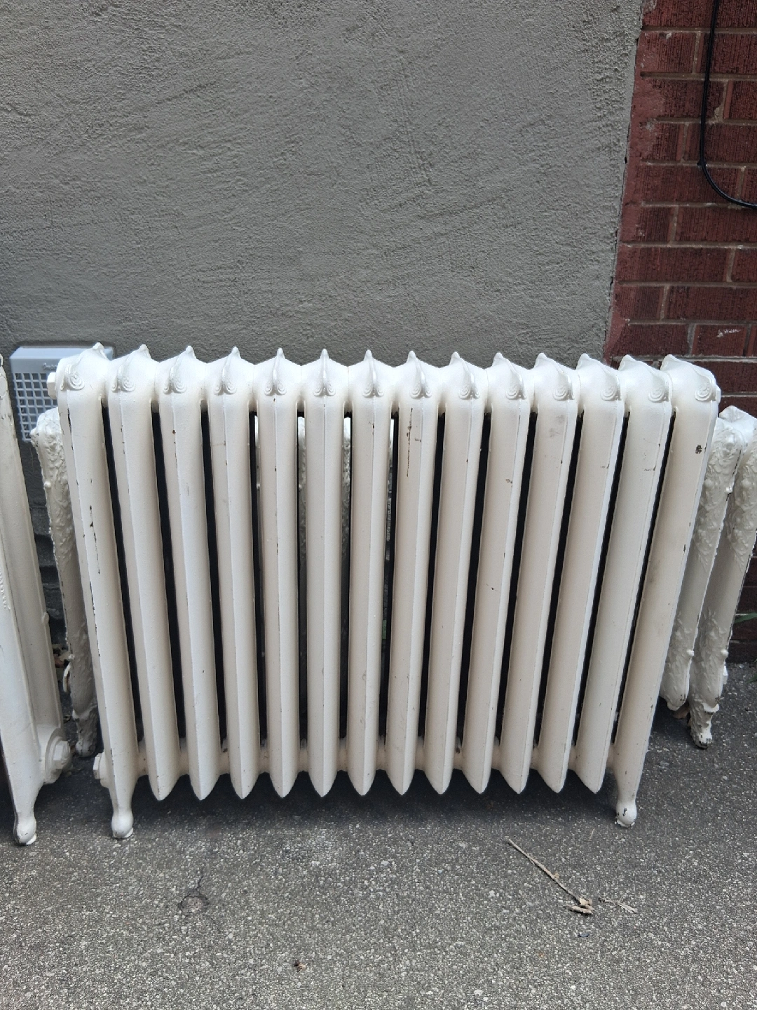 60Cast Iron Radiators for Sale. Radiators are in working condition. They were professionally uninstalled from a house and replaced by new European panel style radiators. Fittings on the radiators have been removed and not cut so they can be installed again. All Radiators come with bleeders. They have been removed for easy transportation L 29x H 38 x W 4 - $200 L 26 x H 38 x W 7 - $190 L 39 x H 30 x W 7 - $190 L 37 x H 30 x W 7 - $190 Selling as is and only pick up. Royal York and Lakeshore area in Etobicoke. If the ad is online the radiators are available.
