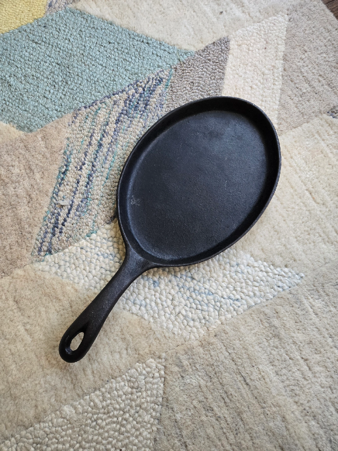 Great condition cast iron fajita pan. Has been used so is 'pre-seasoned'