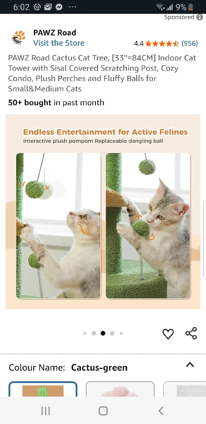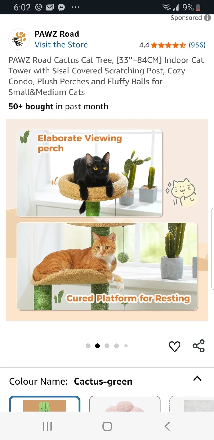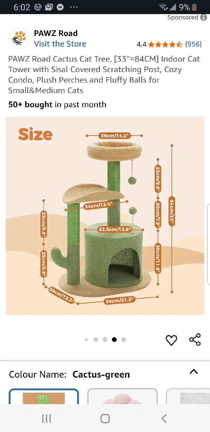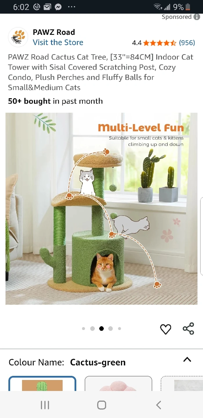Brand new Xp pick up Bovard and Dixie area of Brampton PAWZ Road Cactus Cat Tree, [33''] Indoor Cat Tower with Sisal Covered Scratching Post, Cozy Condo, Plush Perches and Fluffy Balls for Small&Medium Cats