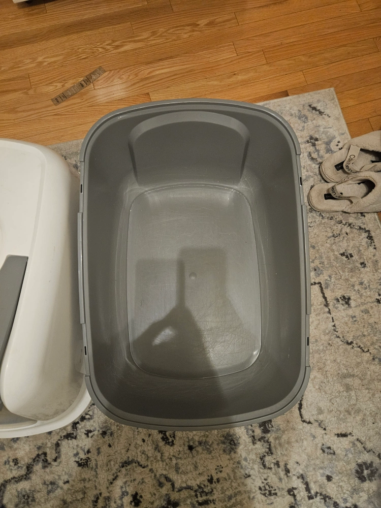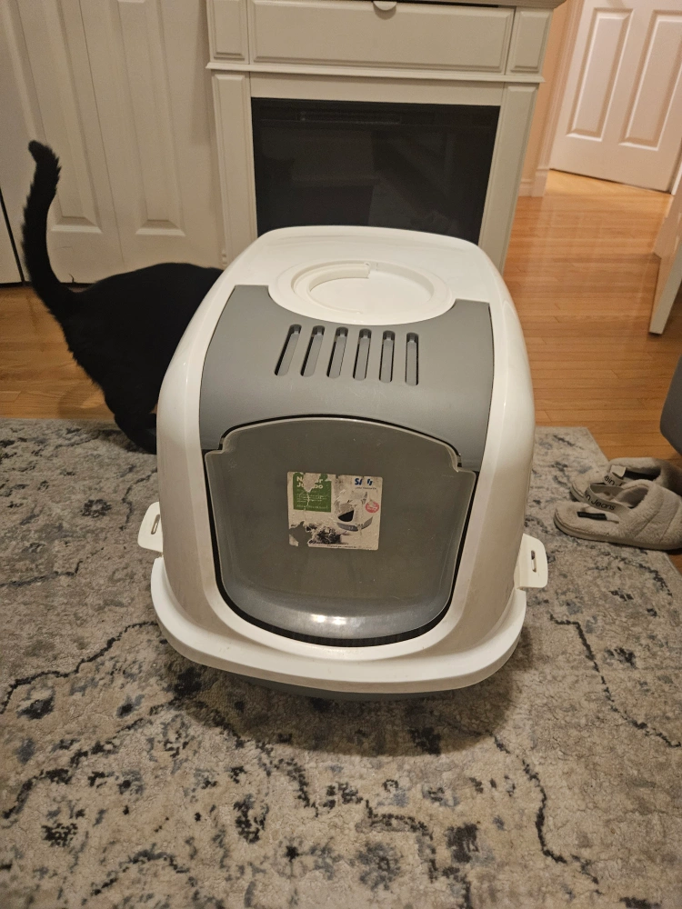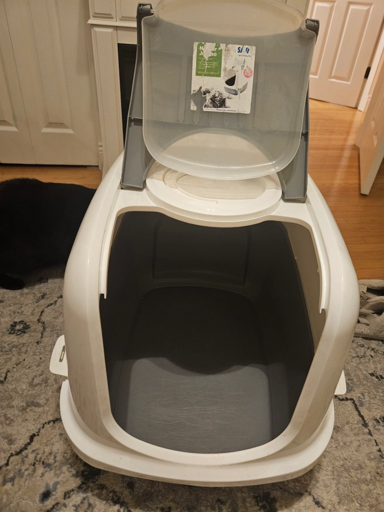 24Selling a cat litter box. This litter box is designed for easy cleaning and maintenance. It features a sleek design that fits well in any home. Super easy to clean. It's in great condition and ready for a new home!