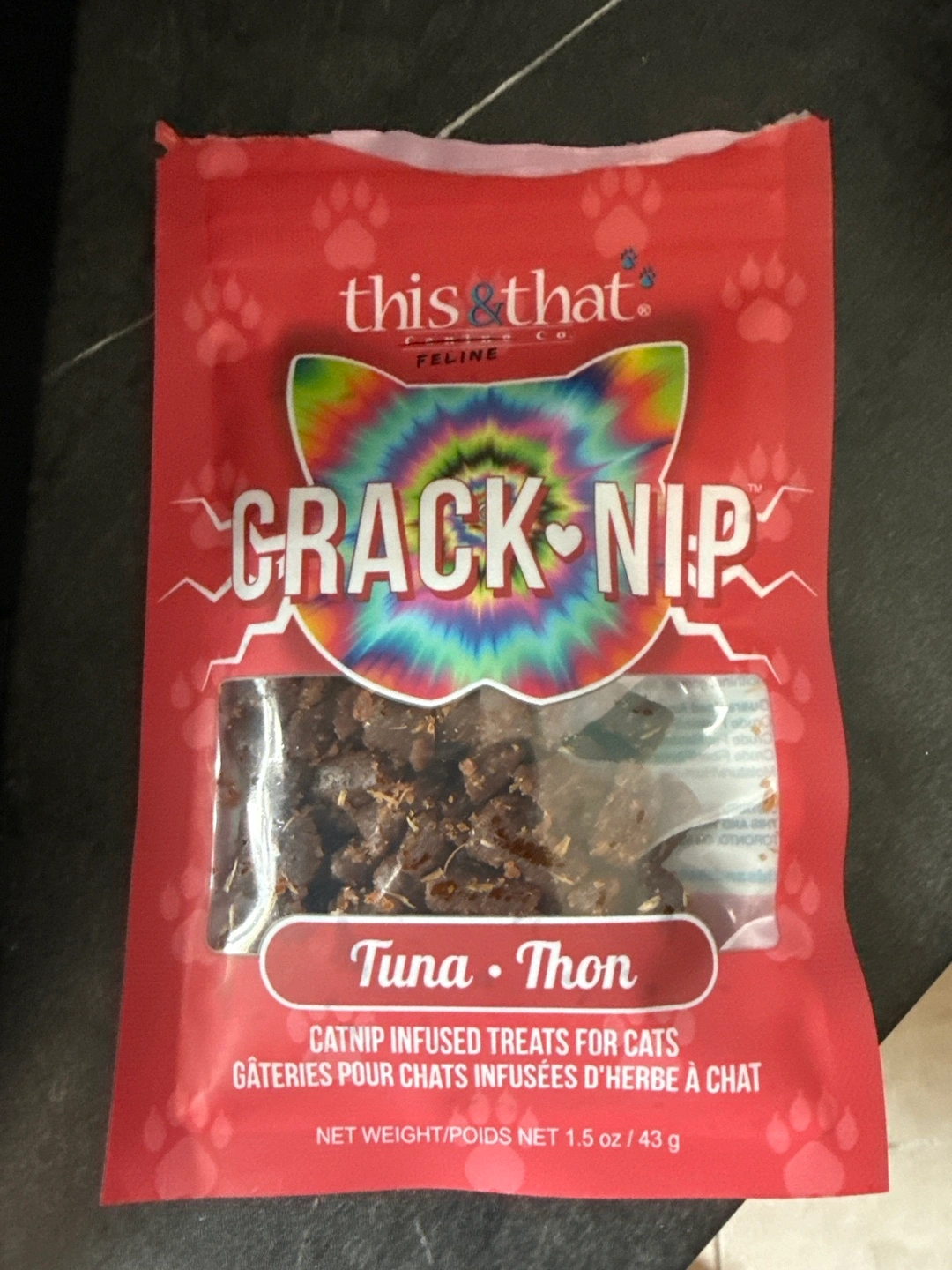 291My cats are picky assholes and rejected these treats outright. Maybe your cat isn’t as snooty as mine? Unlikely, because cats, but maybe they’ll like these? Almost full except for two that my cats sniffed, licked, and then I slipped on later.