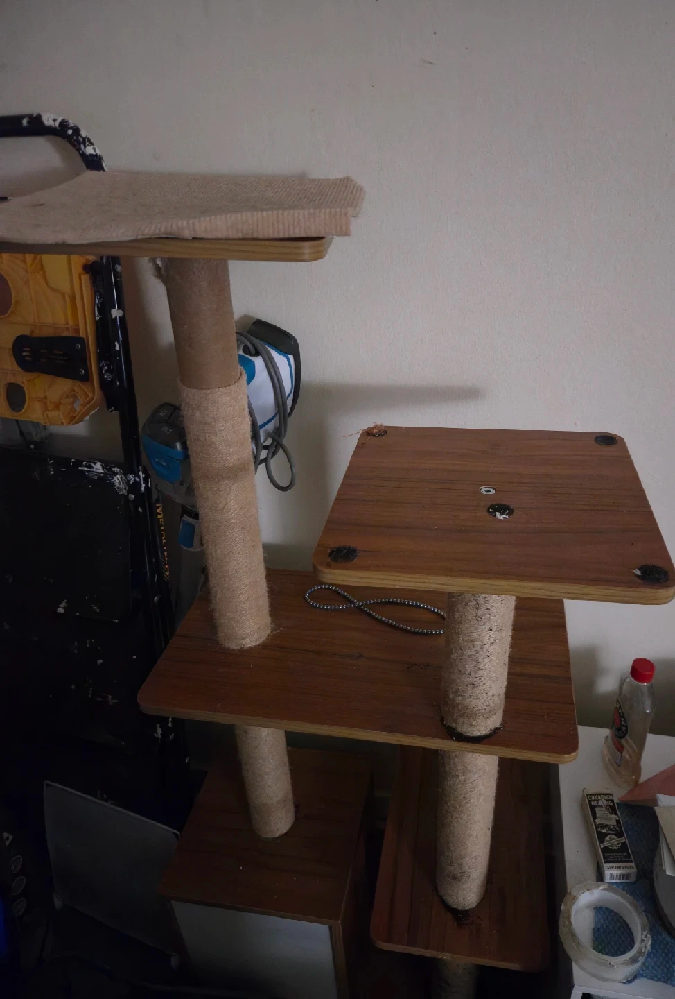 5Here's a cat tree with multiple levels and scratching posts! It's perfect for your feline friend to climb, play, and scratch to their heart's content.
