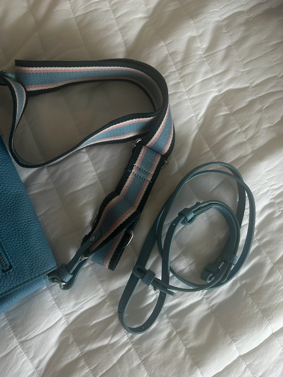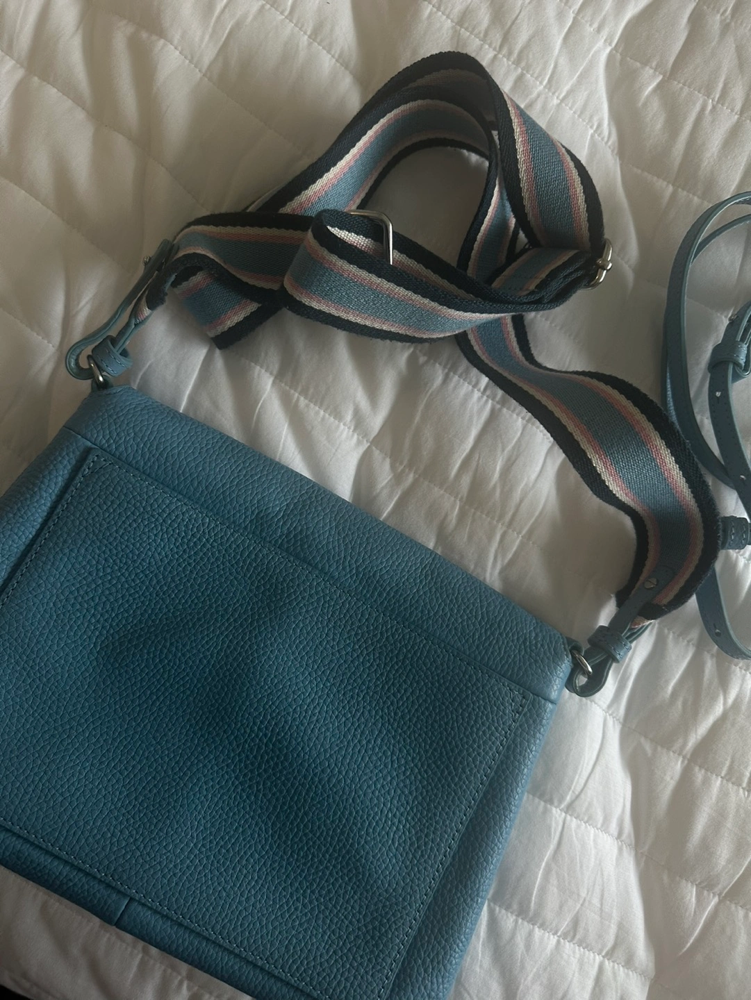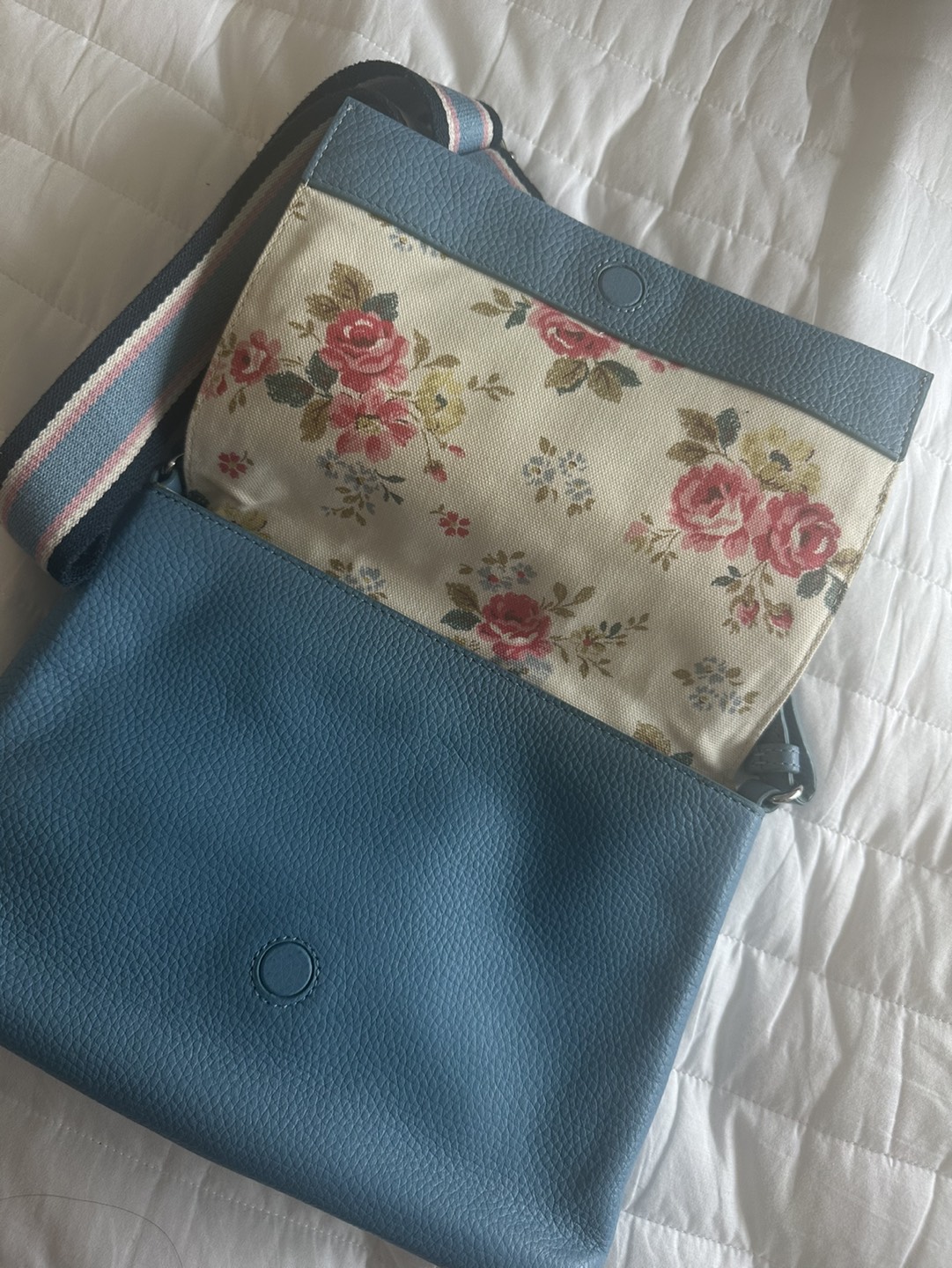 Famous designer brand Cath Kirstin’s vintage bag. Has two straps that you can always change. Cute blue colour, with a good storage capacity, lightness, and low price.