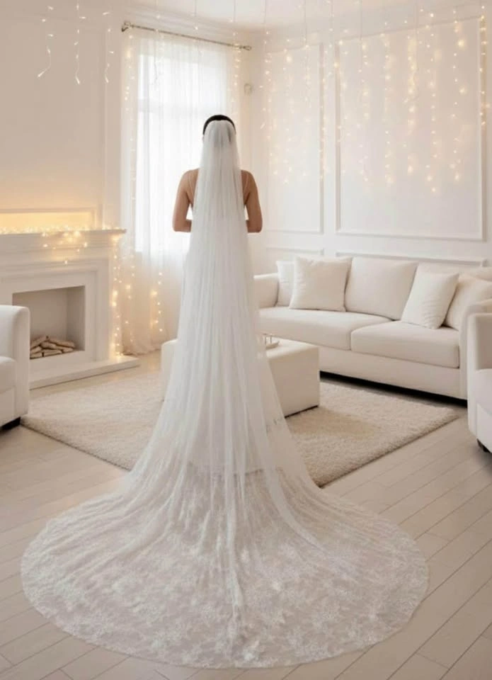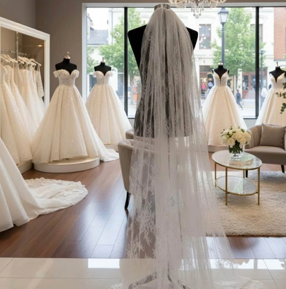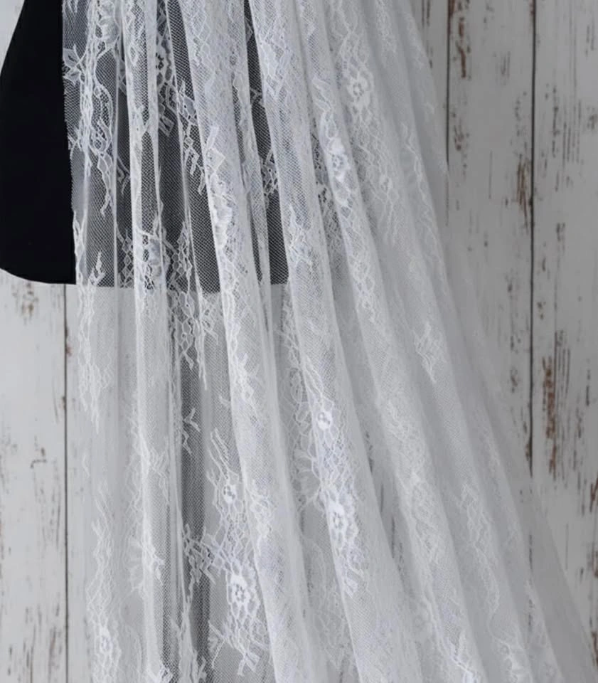 Retail $789 From Loved Twice Bridal flawless and stunning Nylon Lace material Off/soft white avail 300cm w/ metal comb sewn in Please respect pricing!