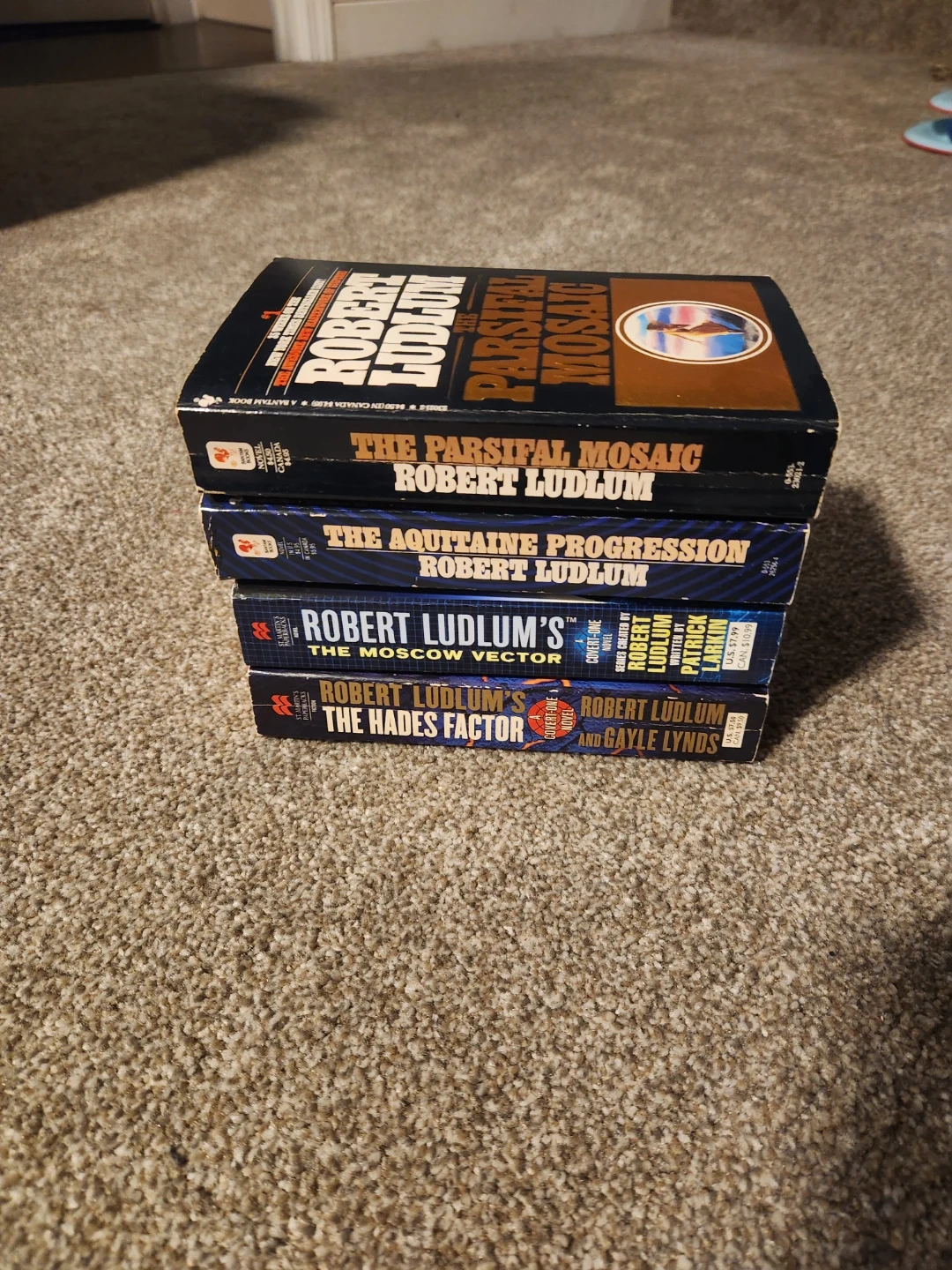 This lot includes several thriller novels by Robert Ludlum. Titles like The Osterman Weekend, Apocalypse Watch, The Matlock Paper, The Matarese Circle, Trevayne, The Bourne Supremacy, The Bourne Identity, The Bourne Ultimatum, The Parsifal Mosaic, The Aquitaine Progression, The Moscow Vector, Robert Ludlum's The Hades Factor are included.