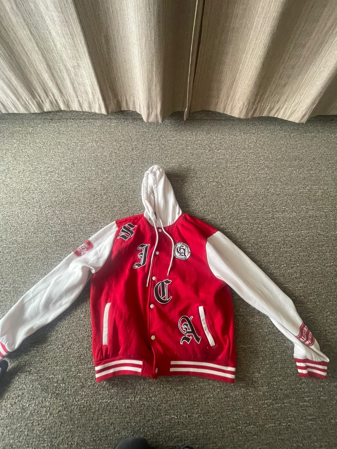 Red and White Letterman Jacket Hoodie