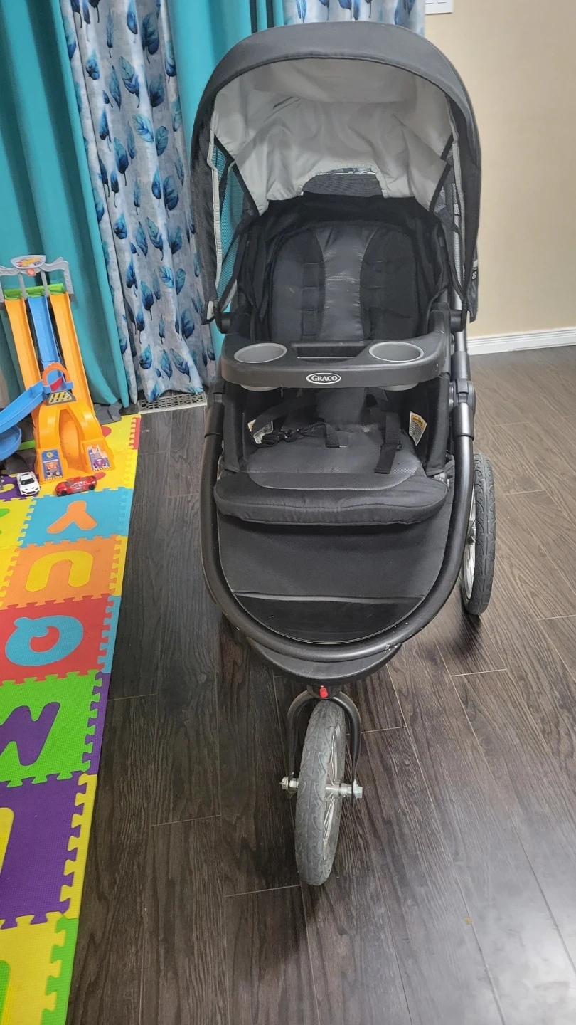 Graco jogging stroller includes a jogger with suspension BUT NO CAR SEAT with secure click-in technology.