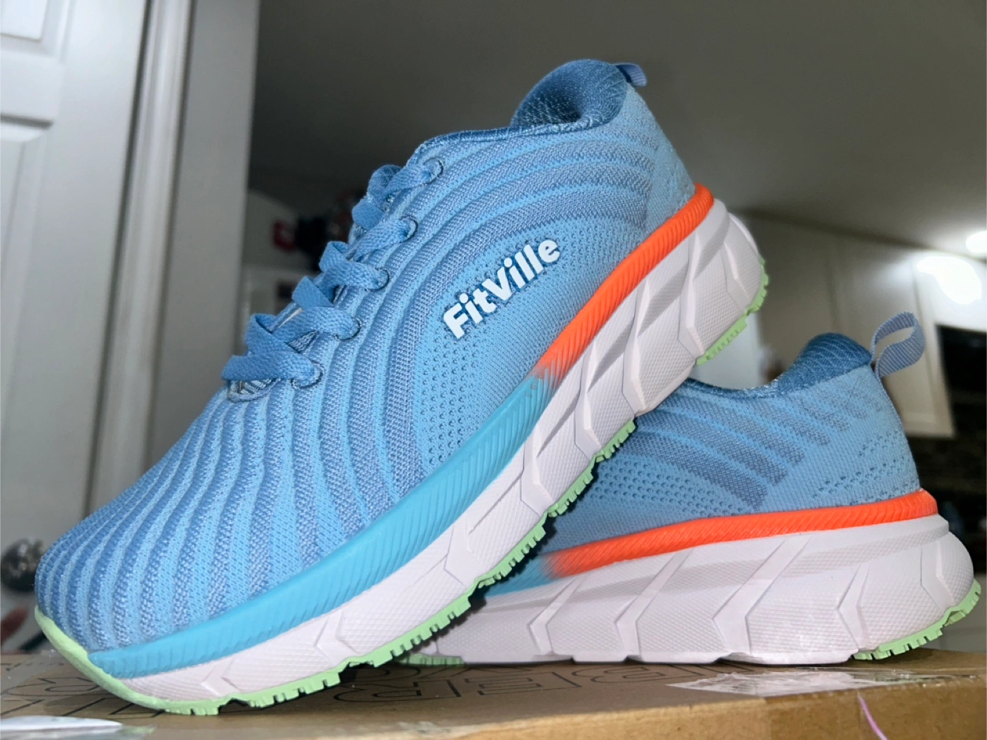 Selling a pair of FitVille women's walking shoes in a lovely light blue colour. They look super comfy and are in great condition. Perfect for everyday wear or a light workout!