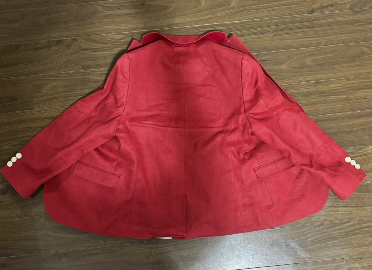 Ralph Lauren blazer in a vibrant red colour. Features a patterned lining and two front pockets. Includes a Hudson's Bay label inside.