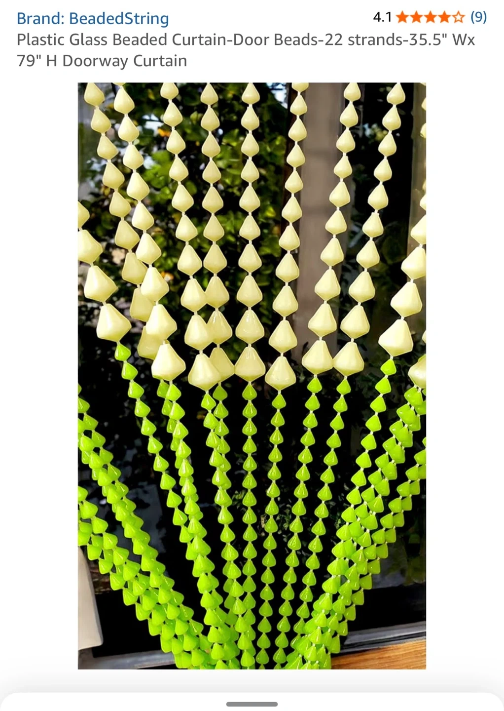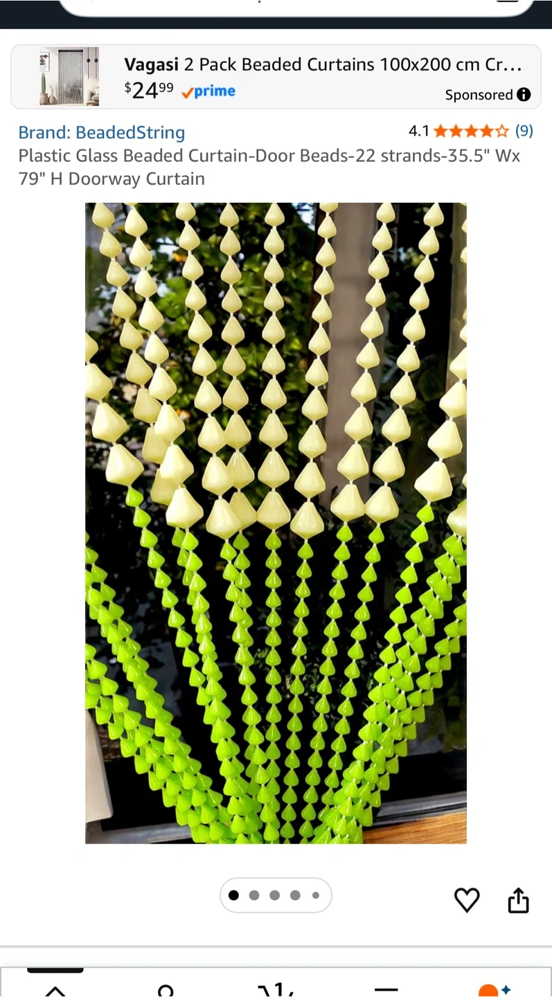 Buy & SellBeaded String Doorway CurtainBeaded String Doorway Curtain$20This beaded curtain features 22 strands with a mixed design of white and neon green plastic beads. It's 35.5" wide and 79" long, perfect for doorways.ConditionNewWHERE TO MEETCheck LocationView MapSELLERverifiedMyraBathurst Manor1063 reviews0 chats·0 favorites·4 viewsSEND CHAT TO SELLERHi Myra! I’m interested in your listing.Hi Myra! I’m interested in your listing.Get the Karrot app to chatSign In to chat