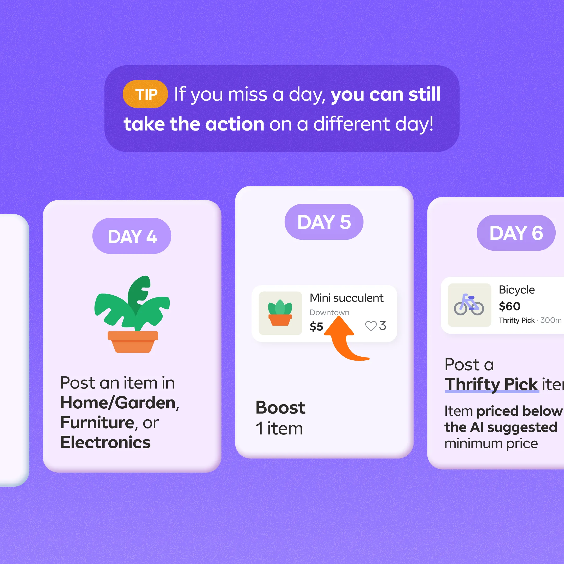 Day 5 - Boost an item (TIP: Go to your "Listings" section and you will find the "Boost" button by each of your listings)