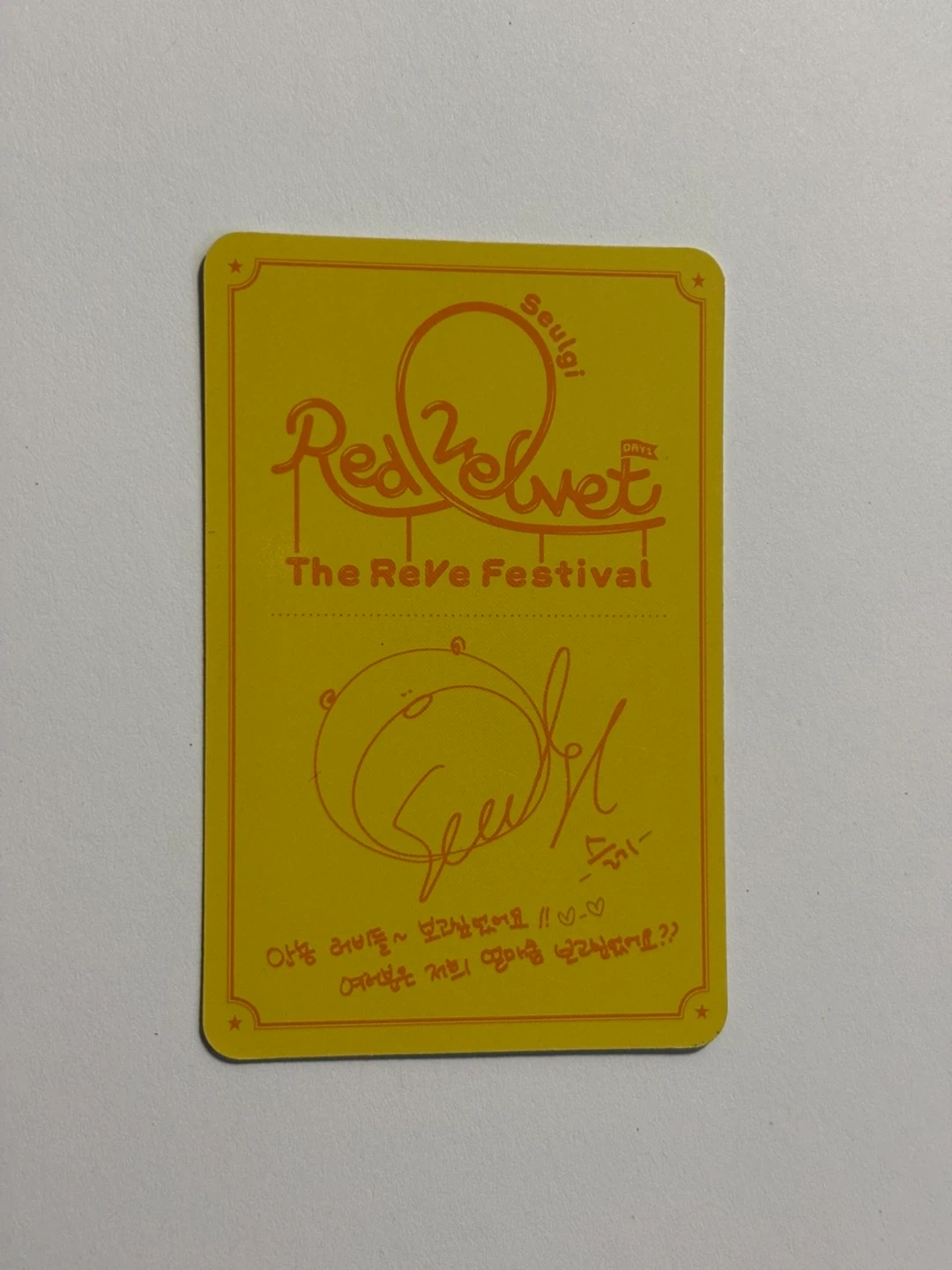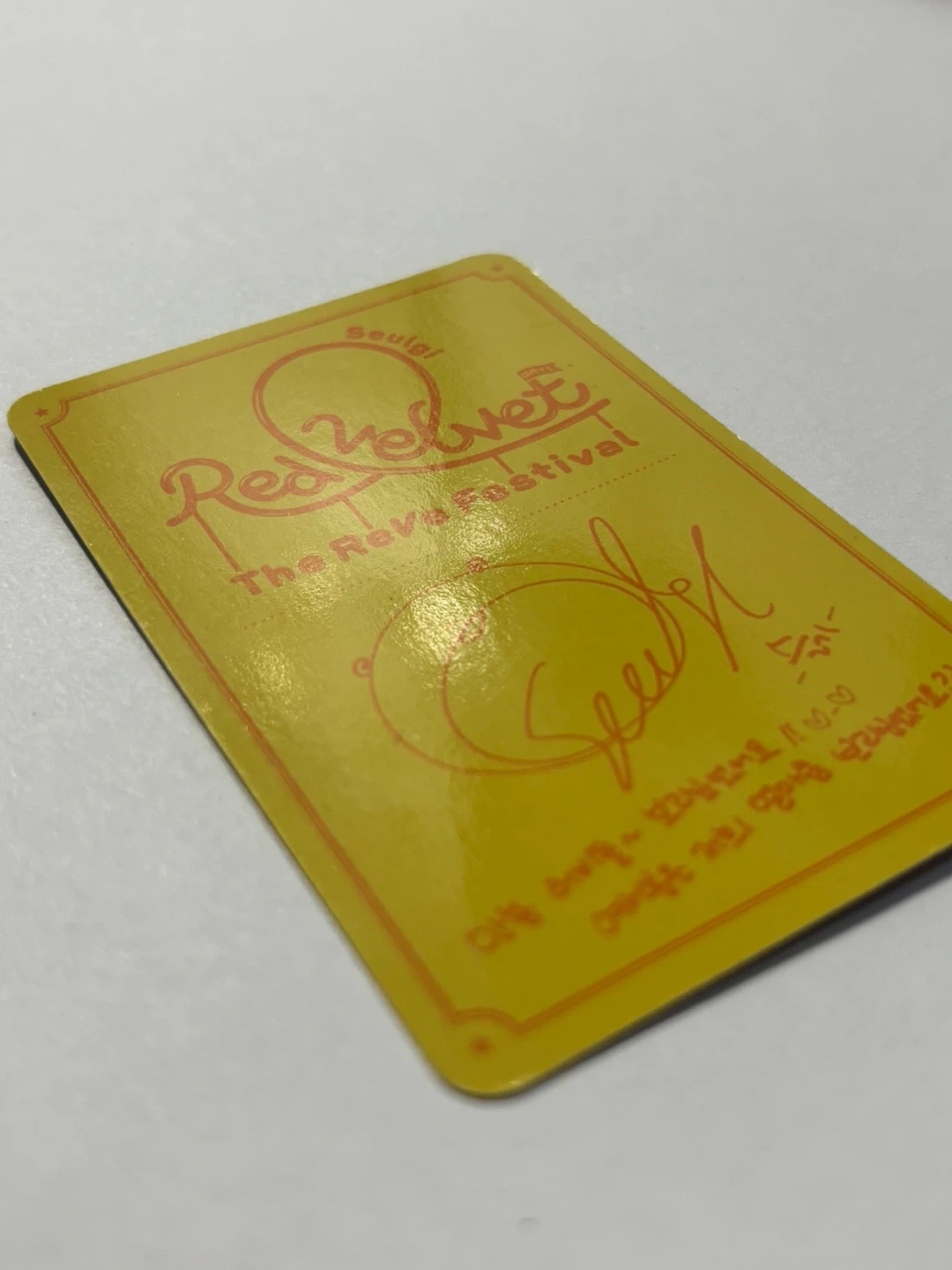 This is a Red Velvet 'The ReVe Festival' photocard featuring Seulgi. It's a collectible item for fans of the K-pop group. Minimal scratches, however they aren’t noticeable unless you look extremely close.