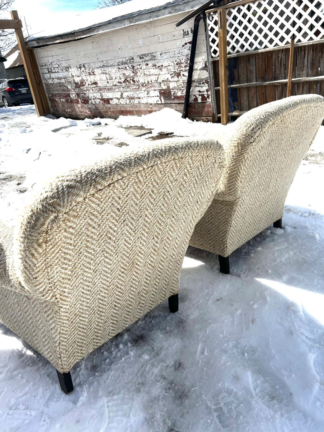 Buy & SellPair of Vintage ArmchairsPair of Vintage Armchairs$54Two armchairs, beige herringbone patterned fabric. Dark wood legs. Slight wear. Excellent vintage pieces.ConditionGoodWHERE TO MEETLogan Avenue & Keewatin StreetView MapSELLERMaryBrooklands1778 reviews1 chats·0 favorites·56 viewsSEND CHAT TO SELLERHi Mary! I’m interested in your listing.Hi Mary! I’m interested in your listing.Get the Karrot app to chatSign In to chat
